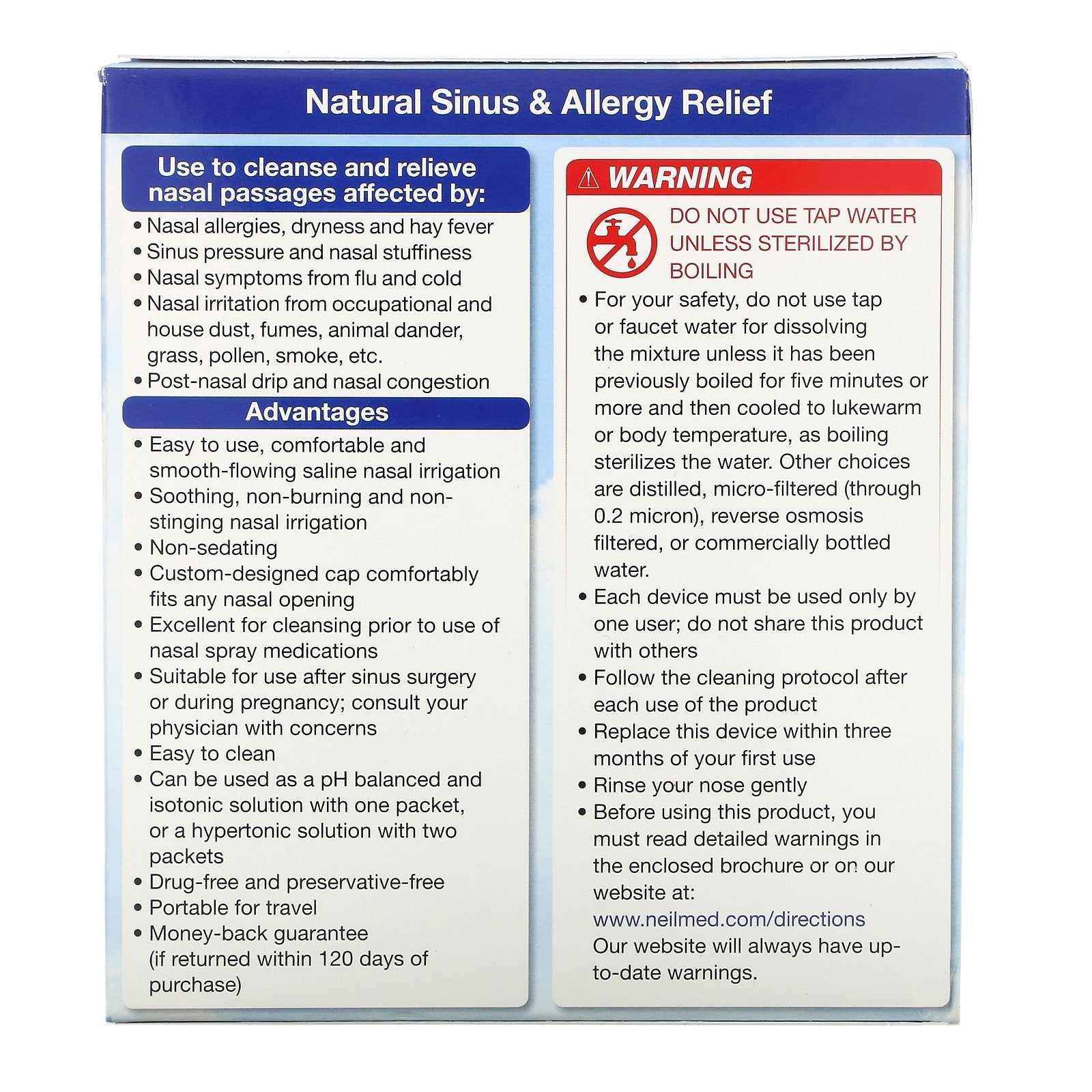 Soothing Saline Nasal Rinse pH Balanced Trust the #1 Physician Recommended Brand** Rinse Prior to Corticosteroid Nasal Spray All Silicone Components Nasal Symptoms from Flu & Cold Nasal Congestion Nasal Allergies Includes 50 Premixed Packets* No Burni