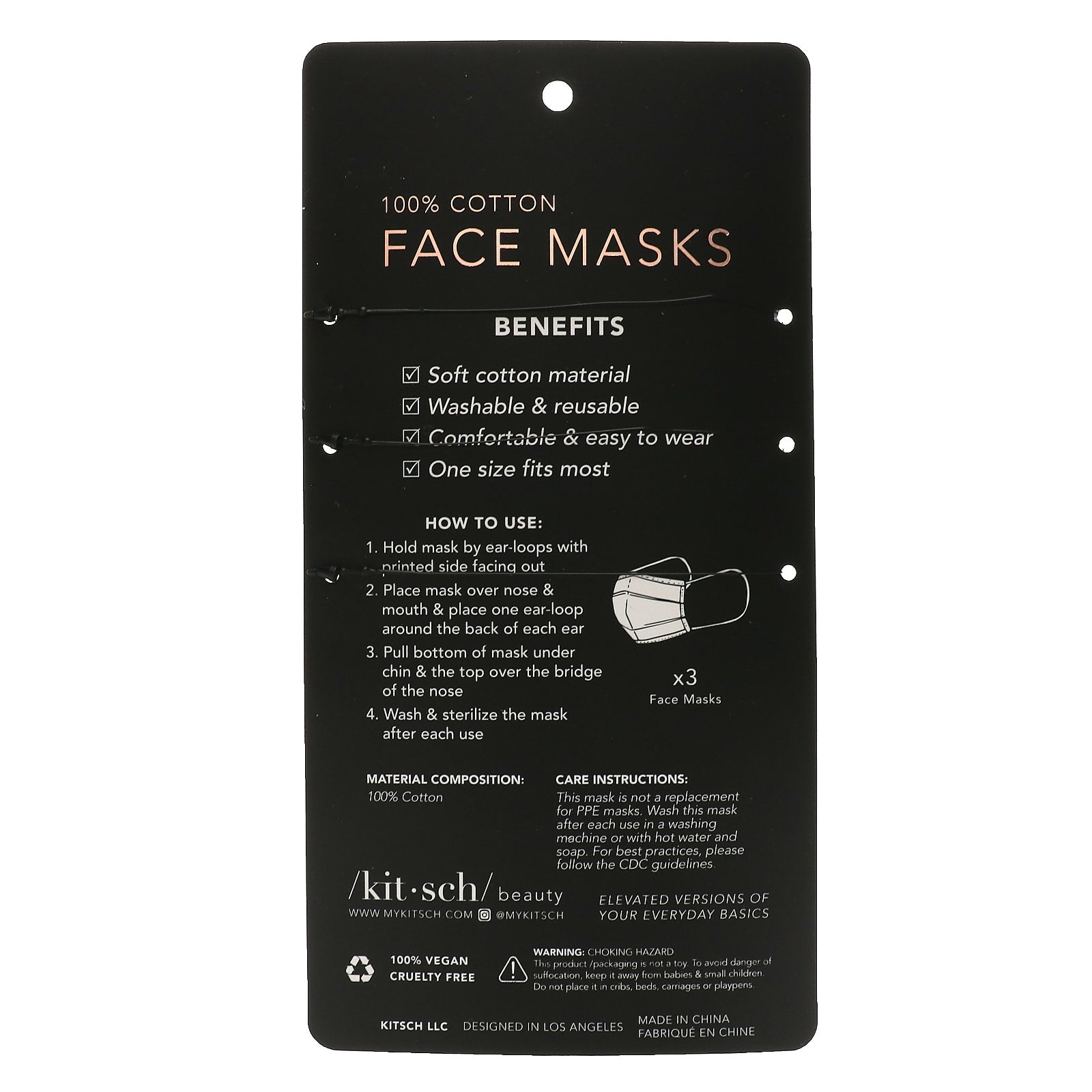 Kitsch, 100% Cotton Reusable Face Masks, Neutral, 3 Pack