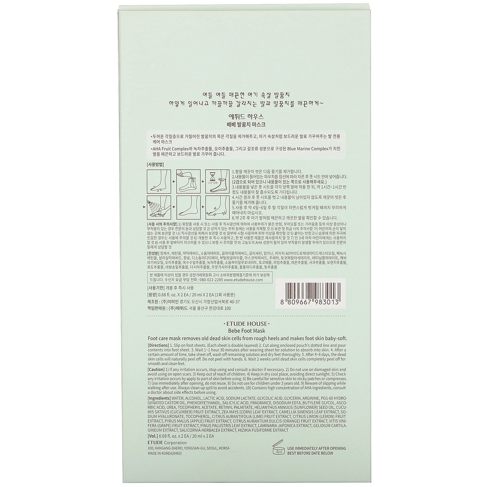Etude House, Bebe Foot Mask, 2 Pair, 0.68 fl oz (20 ml) Each