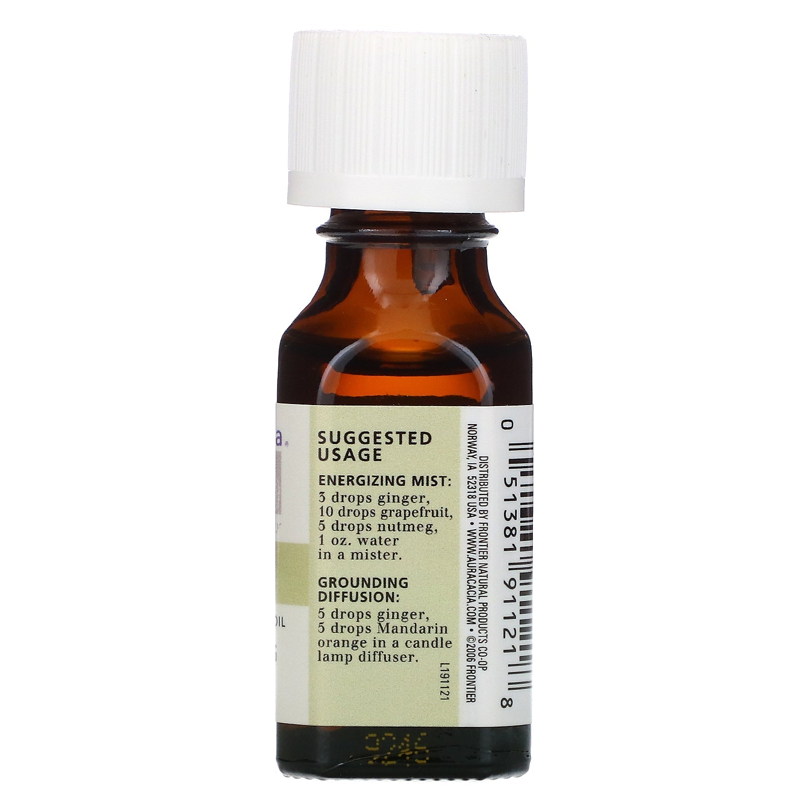 Pure Aromatherapy Anchoring Origin Australia/China/Madagascar Aroma Earthy, Lemon-likeSugg. UseEnergizing Mist: 3 drops ginger, 10 drops grapefruit, 5 drops nutmeg, 1 oz water in a mister. Grounding Diffuser: 5 drops ginger, 5 drops Mandarin oran