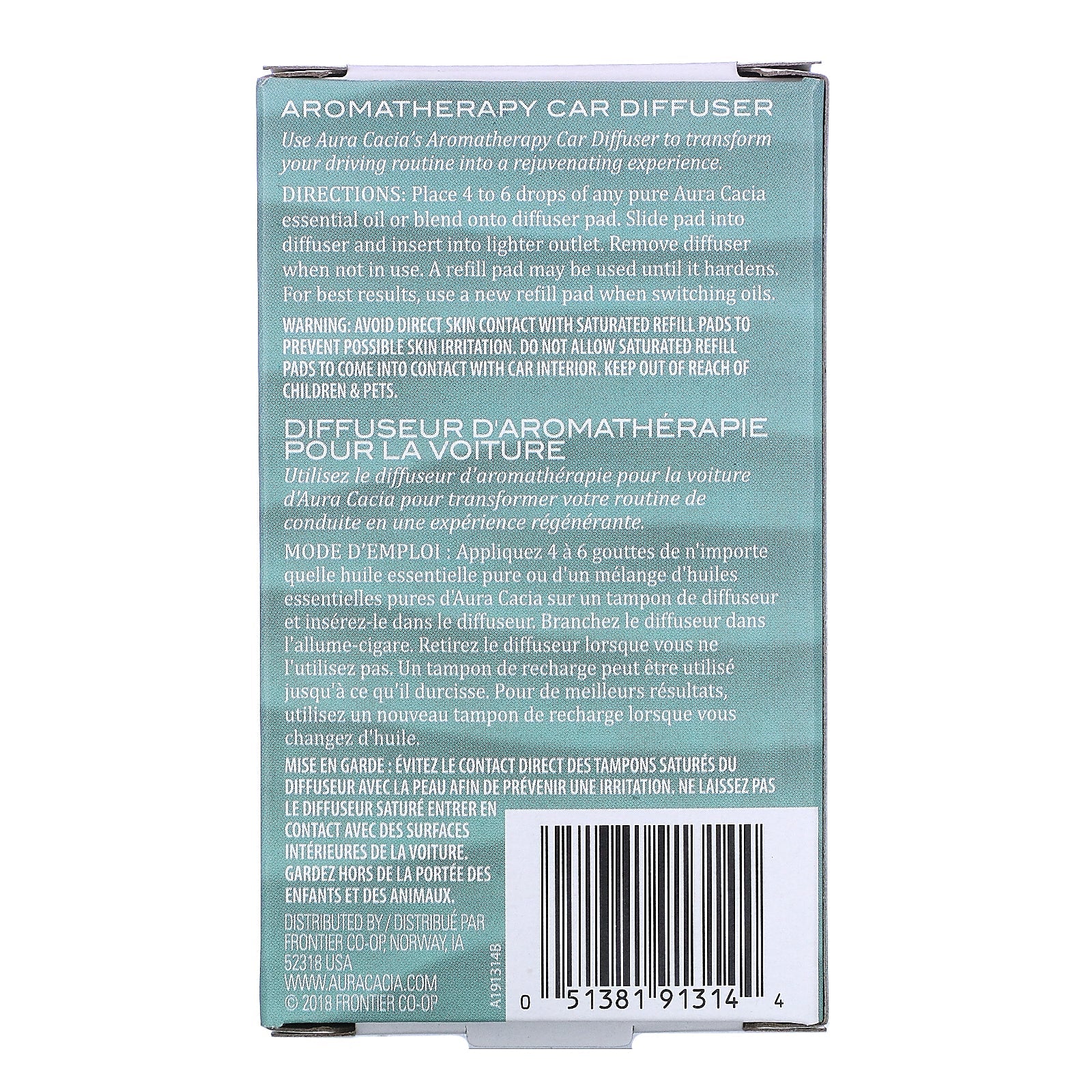 Contains 1 Diffuser and 5 Refill Pads Aura Cacia Aromatherapy Car Diffuser Use Aura Cacia's Aromatherapy Car Diffuser to transform your driving routine into a rejuvenating experience.