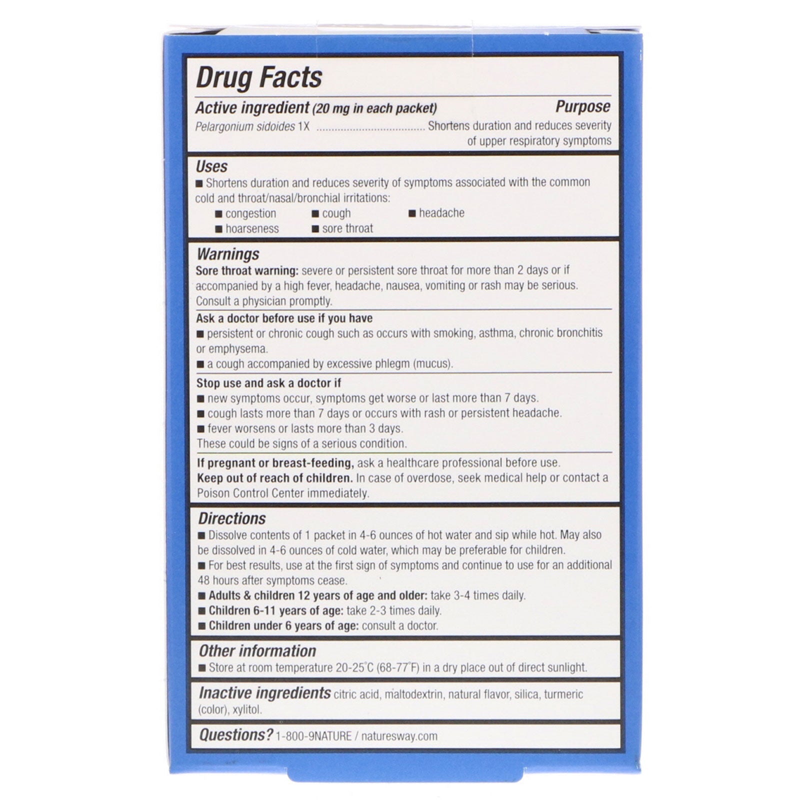 Lemon Flavored Hot Drink Homeopathic Shortens Duration & Reduces Severity Cough, Congestion, Sore Throat, Nasal & Bronchial Irritations Clinically Proven Pelargonium Sidoides 1X May be Served Cold for Children Soothing Hot Drink Non-Drowsy Shorten