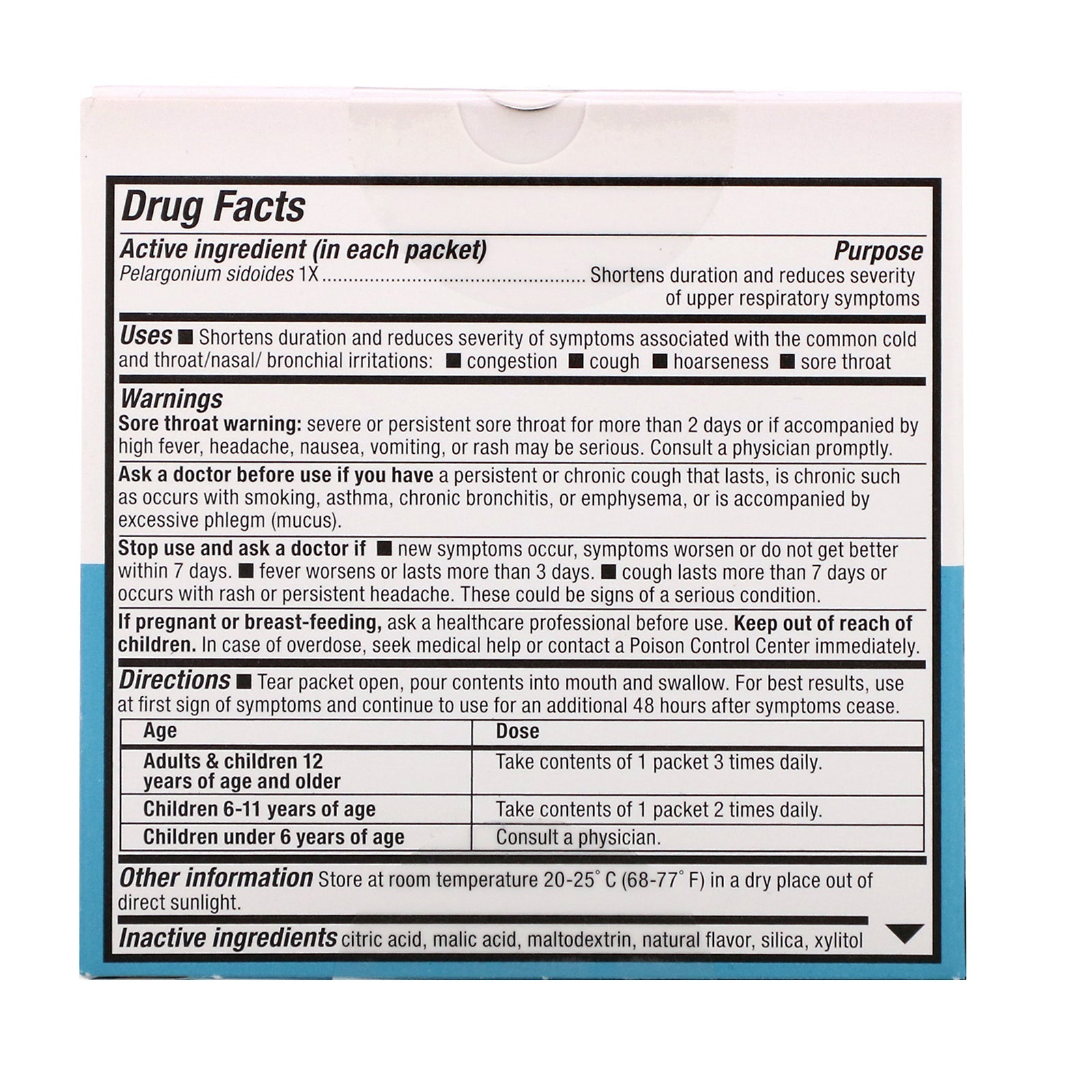 Homeopathic Since 1969 Shortens Duration & Reduces Severity Nasal & Bronchial Irritations Congestion, Sore Throat, Cough Suitable for Children Fast Actives® Powder Packets Clinically Proven Pelargonium Sidoides 1X Non-Drowsy Uses: Shortens durati