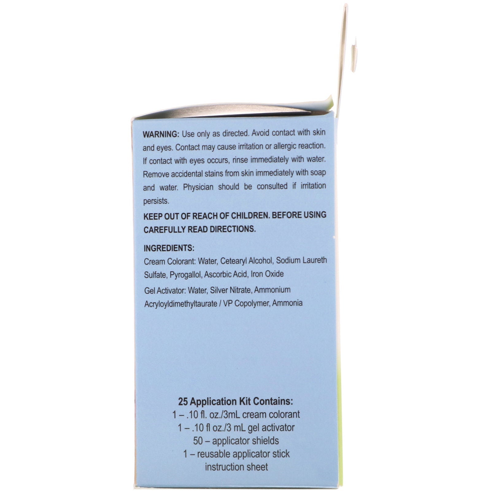 4 Weeks of Rich, Vibrant Eyelash Color Great for Eyebrows Too Clinically Proven Safe to Use On and Around The Eye Area 25 Application Kit Contains: 1 - .10 fl. oz / 3ml cream colorant 1 - .10 fl. oz / 3 ml gel activator 50 - Applicator shields 1 - Reusabl