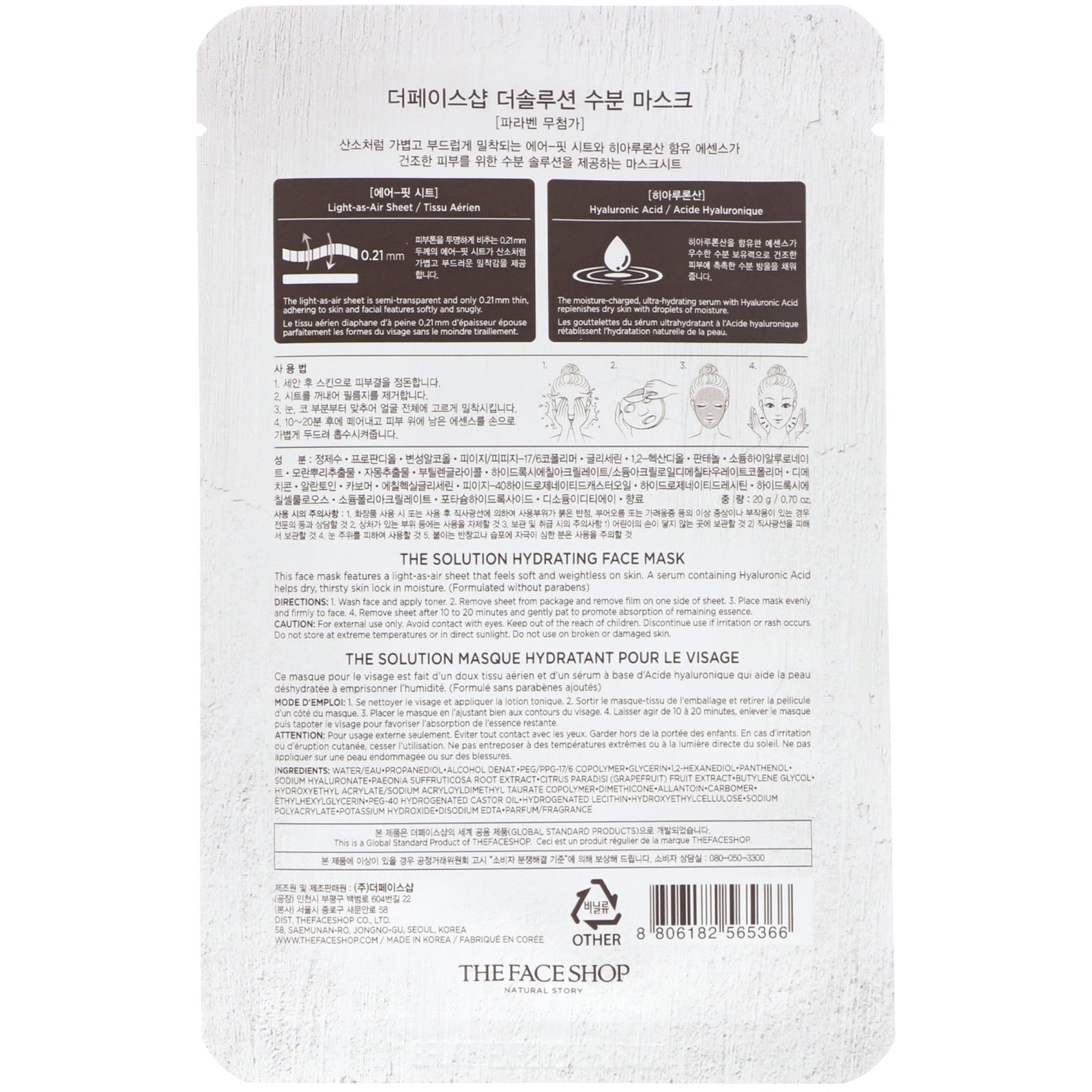 The Face Shop, The Solution, Hydrating Face Mask, 1 Sheet, 0.70 oz (20 g)