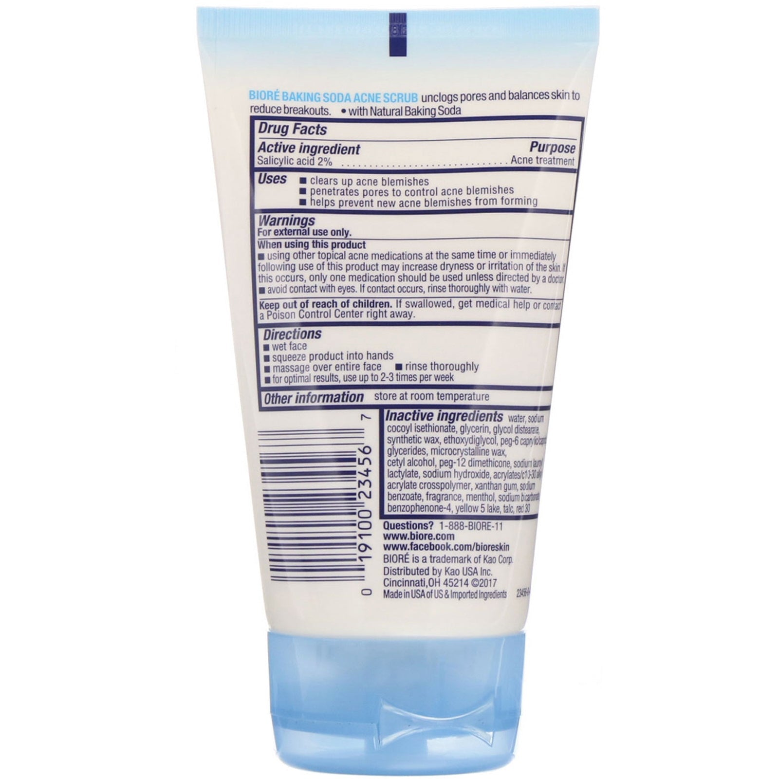 Free Your Pores! Great for Combination Skin Gently Exfoliates & Clears Acne Salicylic Acid Acne Treatment pH Balanced / Oil-Free Acne's Outta Here! With Natural Baking Soda Biore Baking Soda Acne Scrub unclogs pores and balances skin to reduce breakou