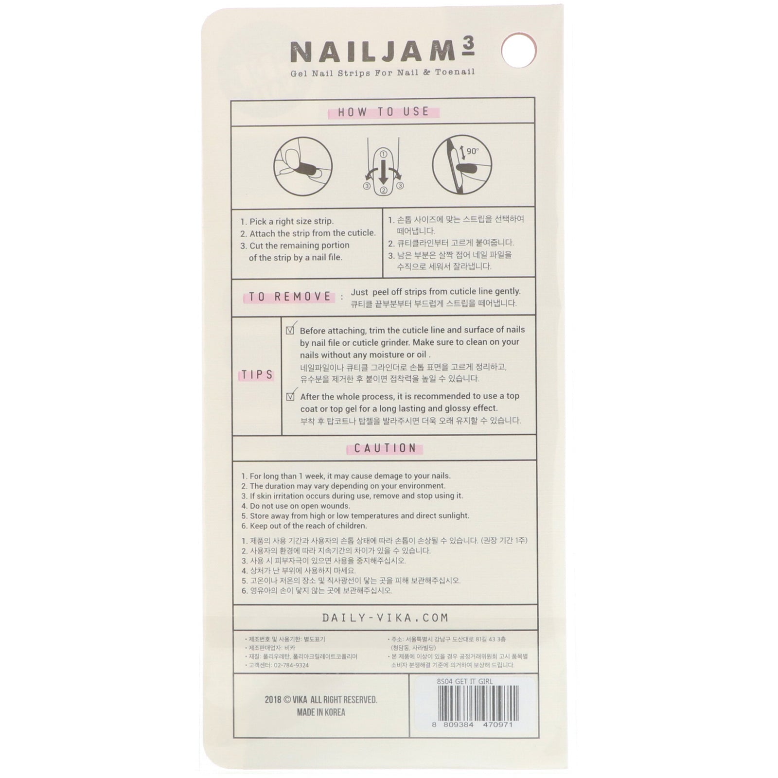 Vika Nailjam, Gel Nail Strips For Nails & Toenails, Get It Girl, 38 Strips