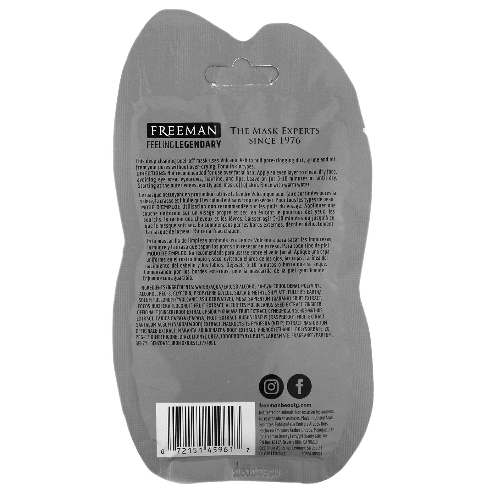 Volcanic Ash Deep Cleanse, Tones + Clears Pores Easy-To-Peel Mask The Mask Experts since 1976 Not Tested on Animals This deep cleansing peel-off mask uses Volcanic Ash to pull pore-clogging dirt, grime and oil from your pores without over-drying. For all