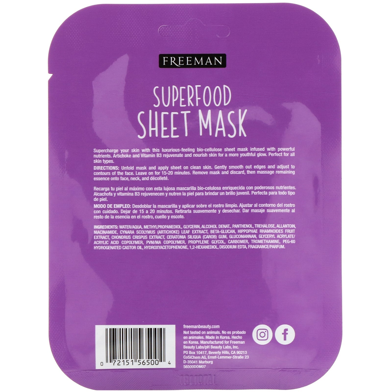 Fresh Face Vitamin B3 and Antioxidants, Help Nourish and Renew Skin Bio-Cellulose Not Tested on Animals Supercharge your skin with this luxurious-feeling bio-cellulose sheet mask infused with powerful nutrients. Artichoke and Vitamin B3 rejuvenate and nou
