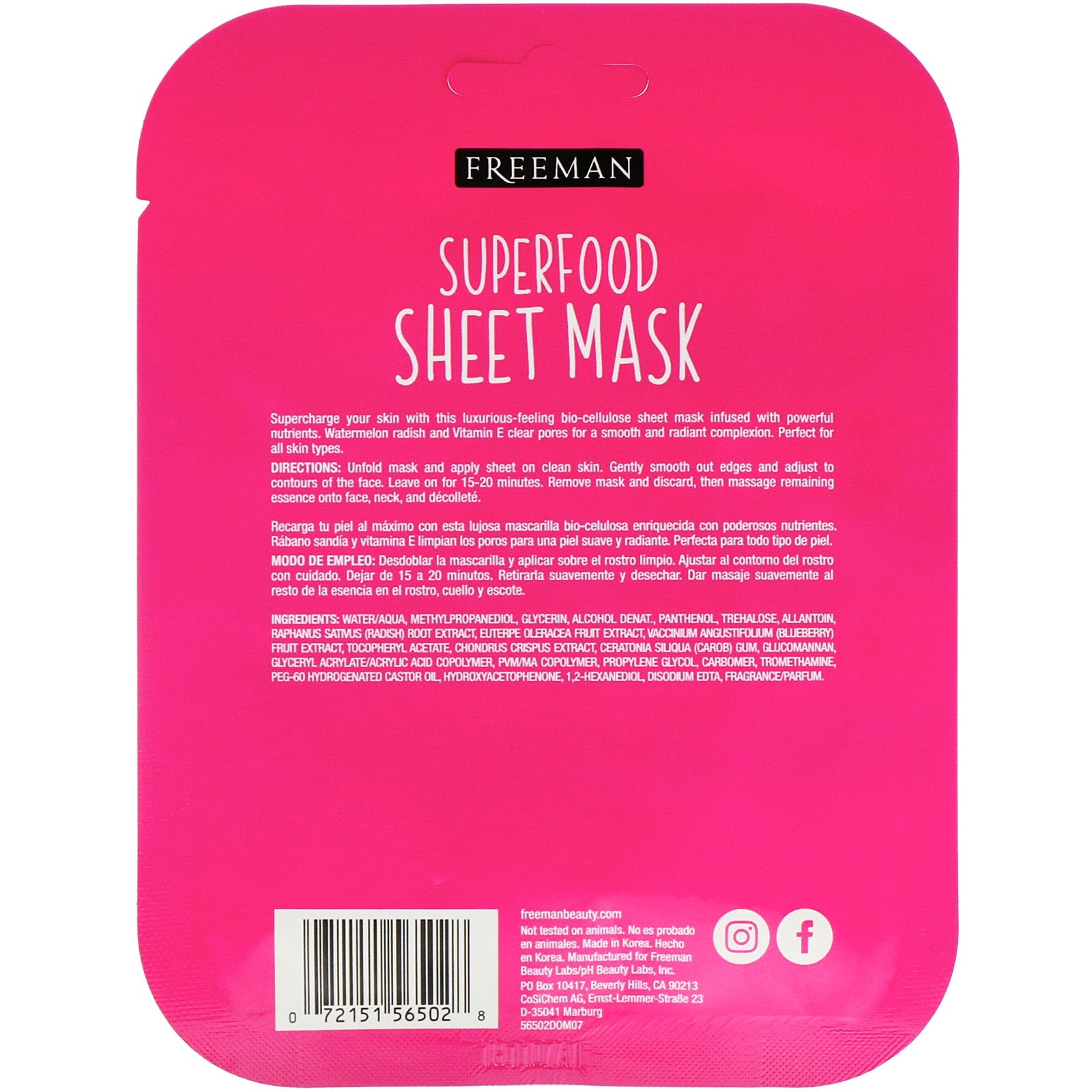 Freeman Beauty, Superfood Sheet Mask, Pore Clearing Watermelon Radish, 1 Mask
