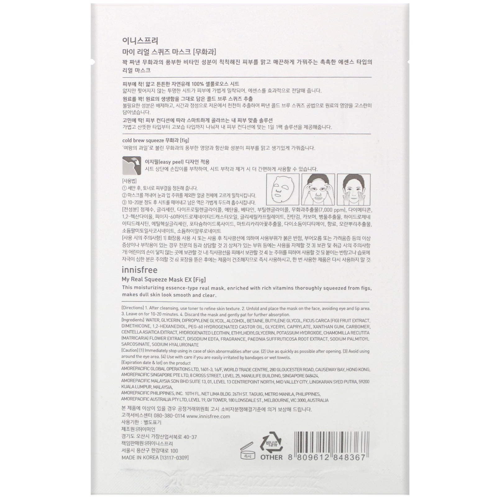 Innisfree, My Real Squeeze Mask EX, Fig, 1 Sheet, 0.67 fl oz (20 ml)