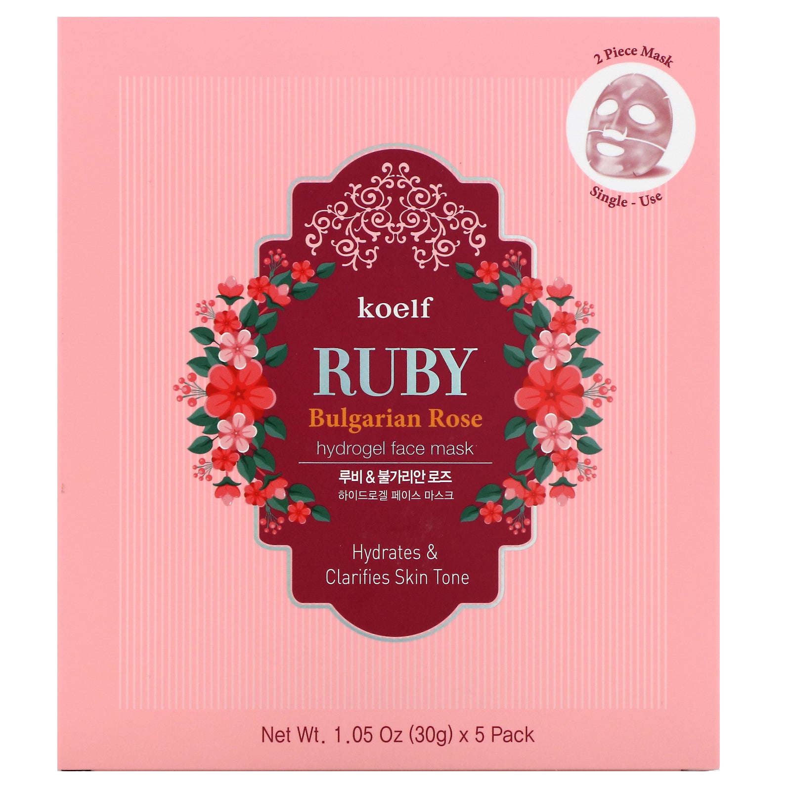 Koelf, Ruby Bulgarian Rose Hydrogel Face Mask Pack, 5 Sheets, 1.05 oz (30 g) Each
