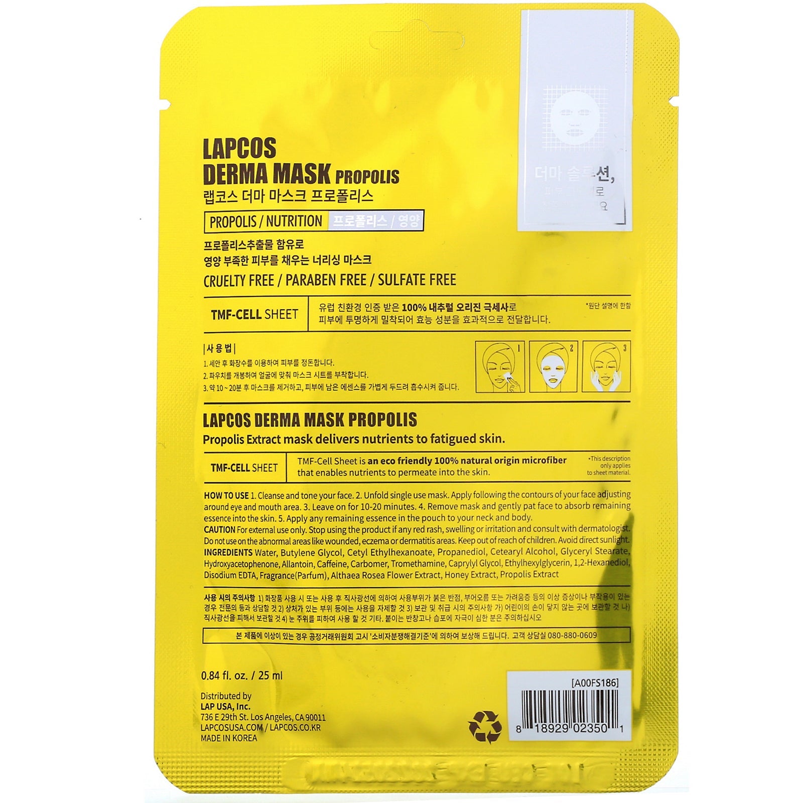 Cruelty-Free / Paraben Free / Sulfate Free TMF-Cell Sheet Lapcos Derma Mask Propolis Propolis extract mask delivers nutrients to fatigued skin. TMF-Cell Sheet - TMF-Cell Sheet is an eco friendly 100% natural origin microfiber that enables nutrients to p