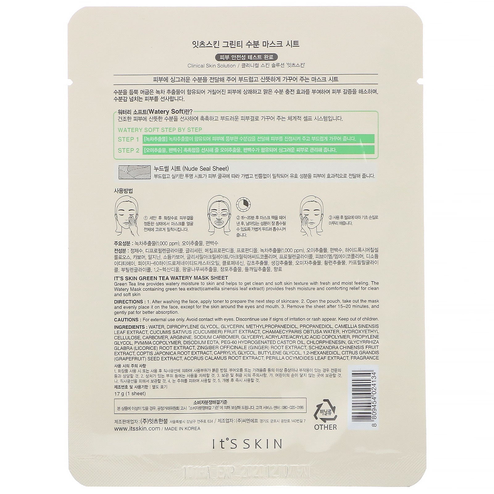 Watery Mask Sheet Skin Safety Tested Clinical Skin Solution The Watery Mask containing green tea extract (camellia sinensis leaf extract) provides fresh moisture and comforting relief for clean and soft skin. It's Skin Green Tea Watery Mask Sheet Green Te