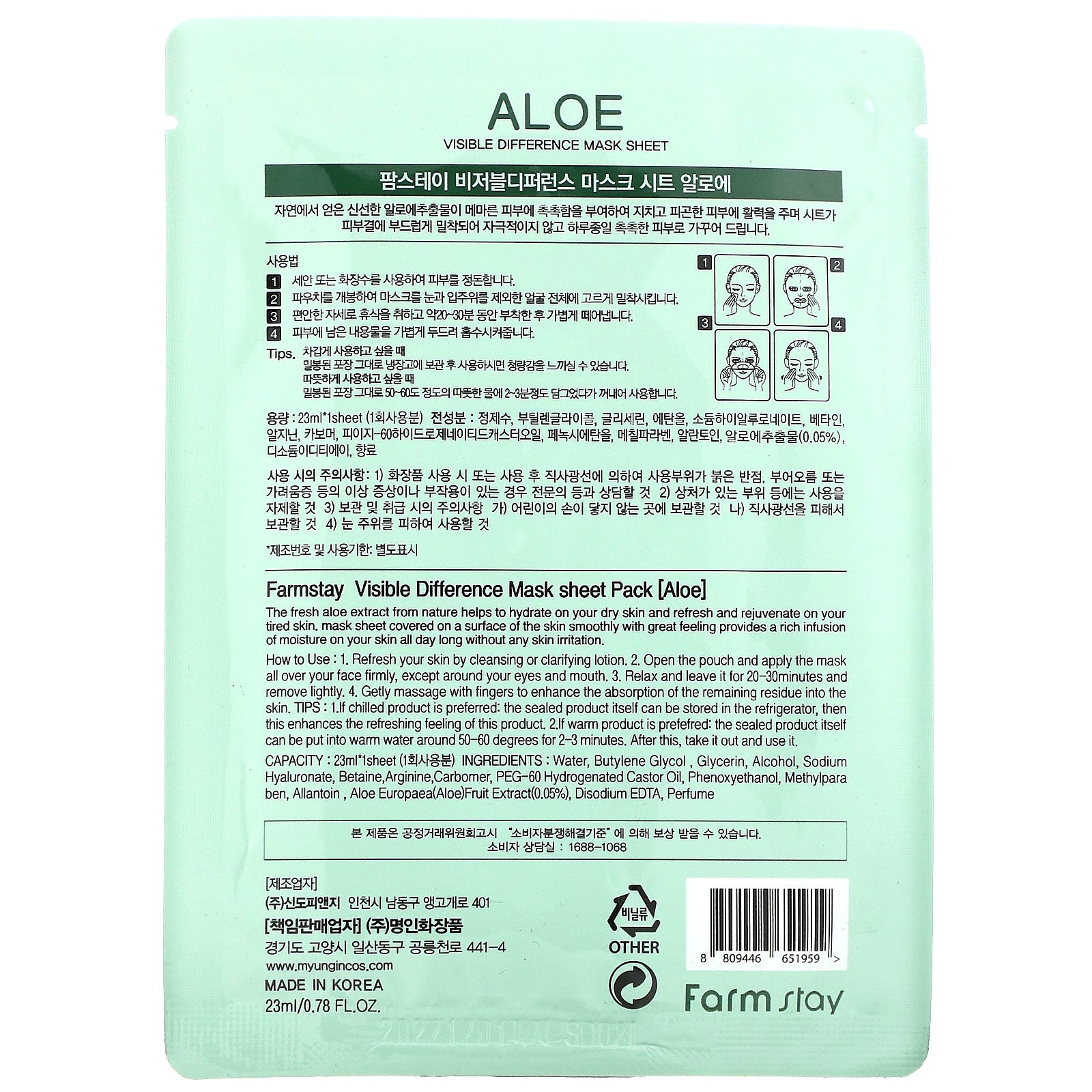 Farmstay, Visible Difference Beauty Mask Sheet, Aloe, 1 Sheet, 0.78 fl oz (23 ml)