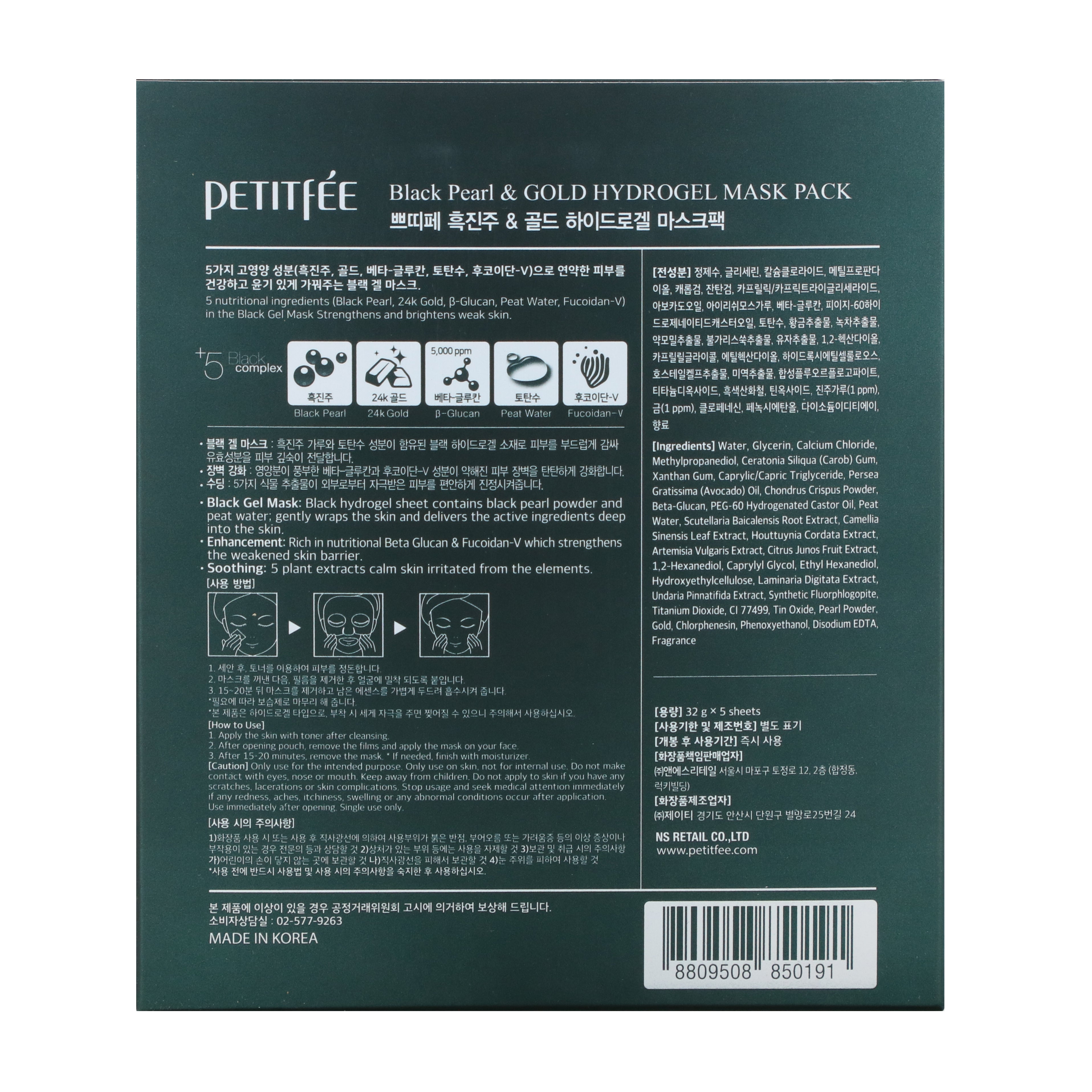 Petitfee, Black Pearl & Gold Hydrogel Mask Pack, 5 Sheets, 32 g Each