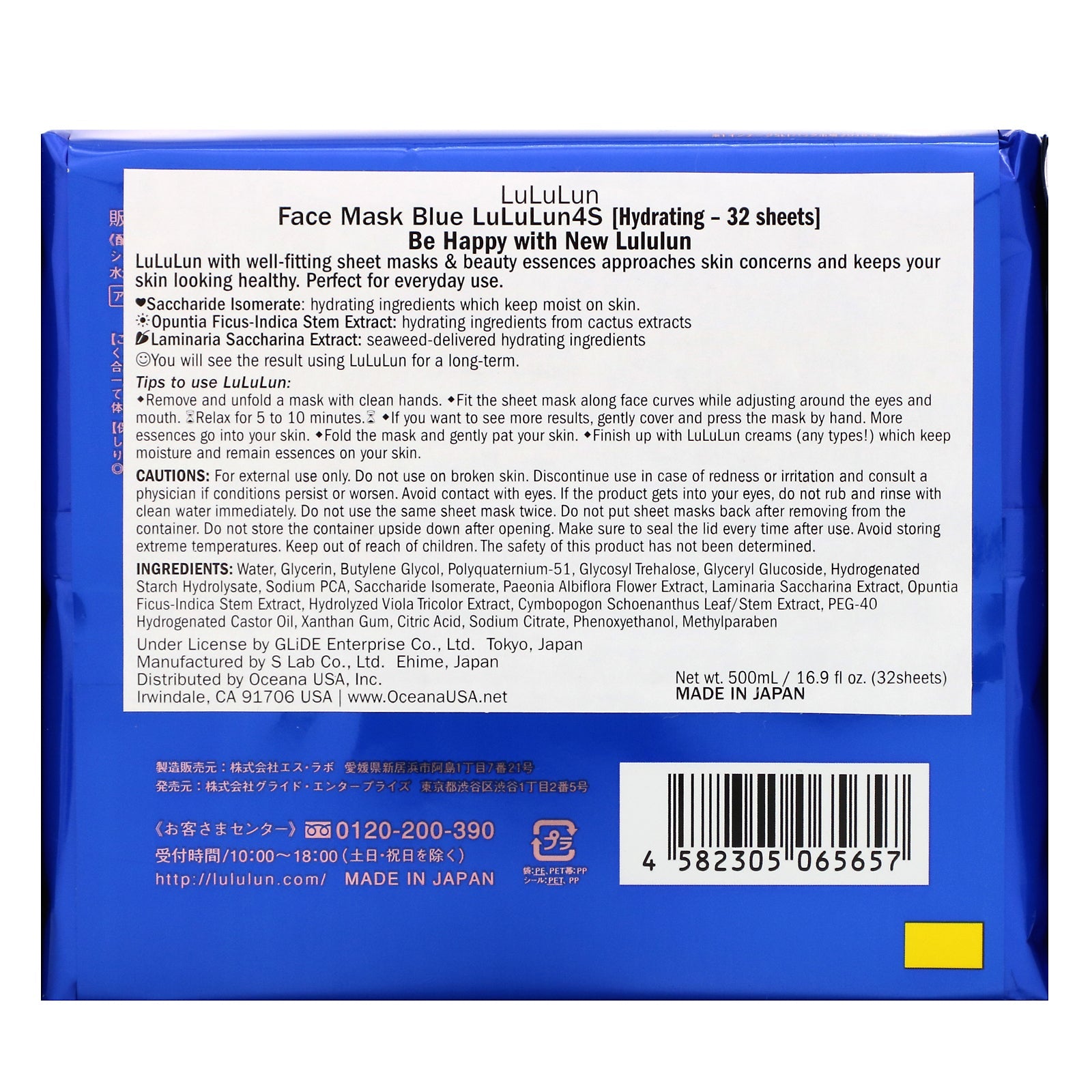 Lululun, Hydrating, Blue Face Mask, 32 Sheets, 16.9 fl oz (500 ml)