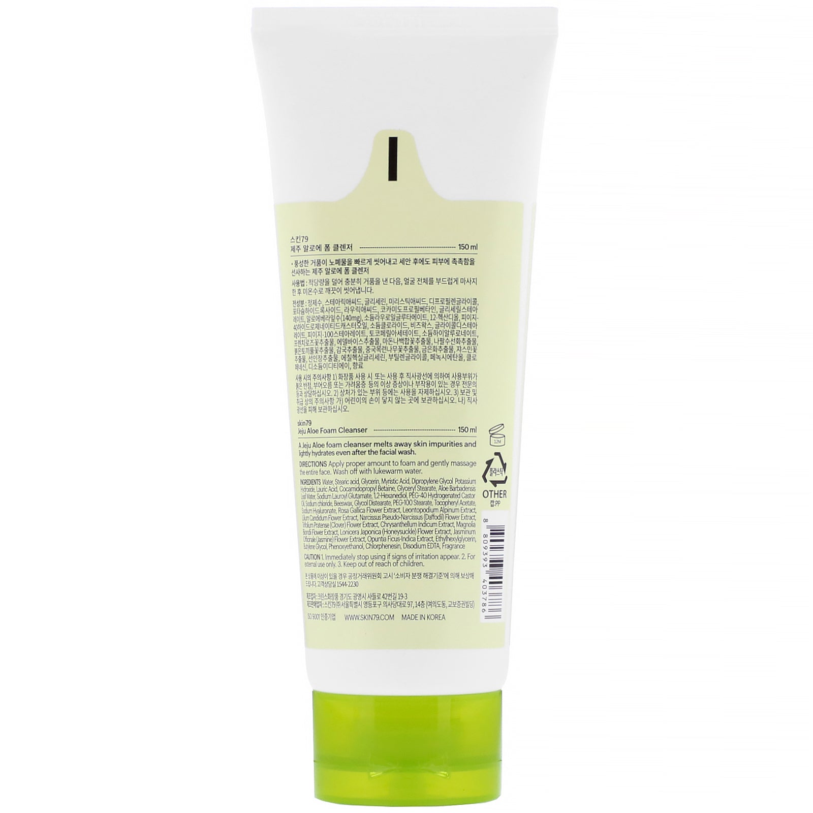 Fresh & Purifying A Jeju Aloe foam cleanser melts away skin impurities and lightly hydrates even after the facial wash. Skin79 Jeju Aloe Foam Cleanser is a gentle foaming face wash which cleans away makeup, grime and oil without stripping skin or leav