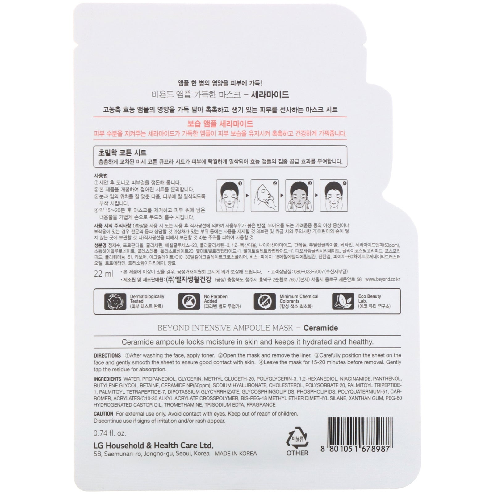 Skin-Fitting Cotton Sheet Skin-Friendly Dermatologically Tested No Paraben Added Minimum Chemical Colorants Eco Beauty Lab Ceramide ampoule locks moisture in skin and keeps it hydrated and healthy.Sugg. UseAfter washing the face, apply toner. Ope