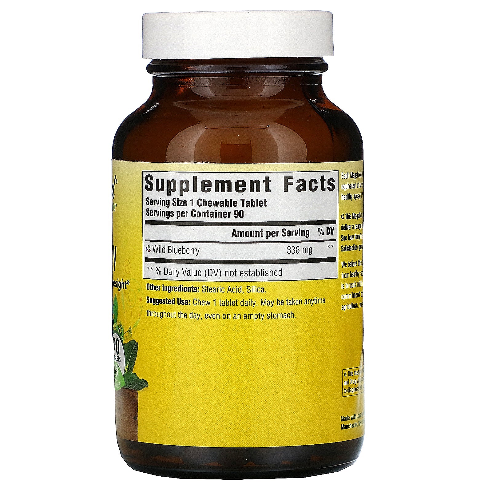 Fresh From Farm to Tablet™ Supports Already Healthy Eyesight Whole Food Dietary Supplement Certified B Corporation - Business for Good Non GMO Project Verified Glyphosate Residue Free Tested 125+ Pesticides & Herbicides NSF - Certified Gluten-Free Certified Vegan Kosher Dairy Free Soy Free Each MegaFood Wild Blueberry tablet provides the equivalent of seven wild blueberries and supports healthy eyesight.Sugg. UseChew 1 table daily. May be taken anytime throughout the day, even on an empty stomach.Other IngredientsStearic acid, silica.Supplement FactsServing Size: 1 Chewable Tablet Servings Per Container: 90 Amount Per Serving % Daily Value •Wild Blueberry 336 mg ** **% Daily Value (DV) not established •This MegaFood product is made with real food to deliver a range of health-promoting compounds.DisclaimerWhile VitaminsUK strives to ensure the accuracy of its product images and information, some manufacturing changes to packaging and/or ingredients may be pending update on our site. Although items may occasionally ship...