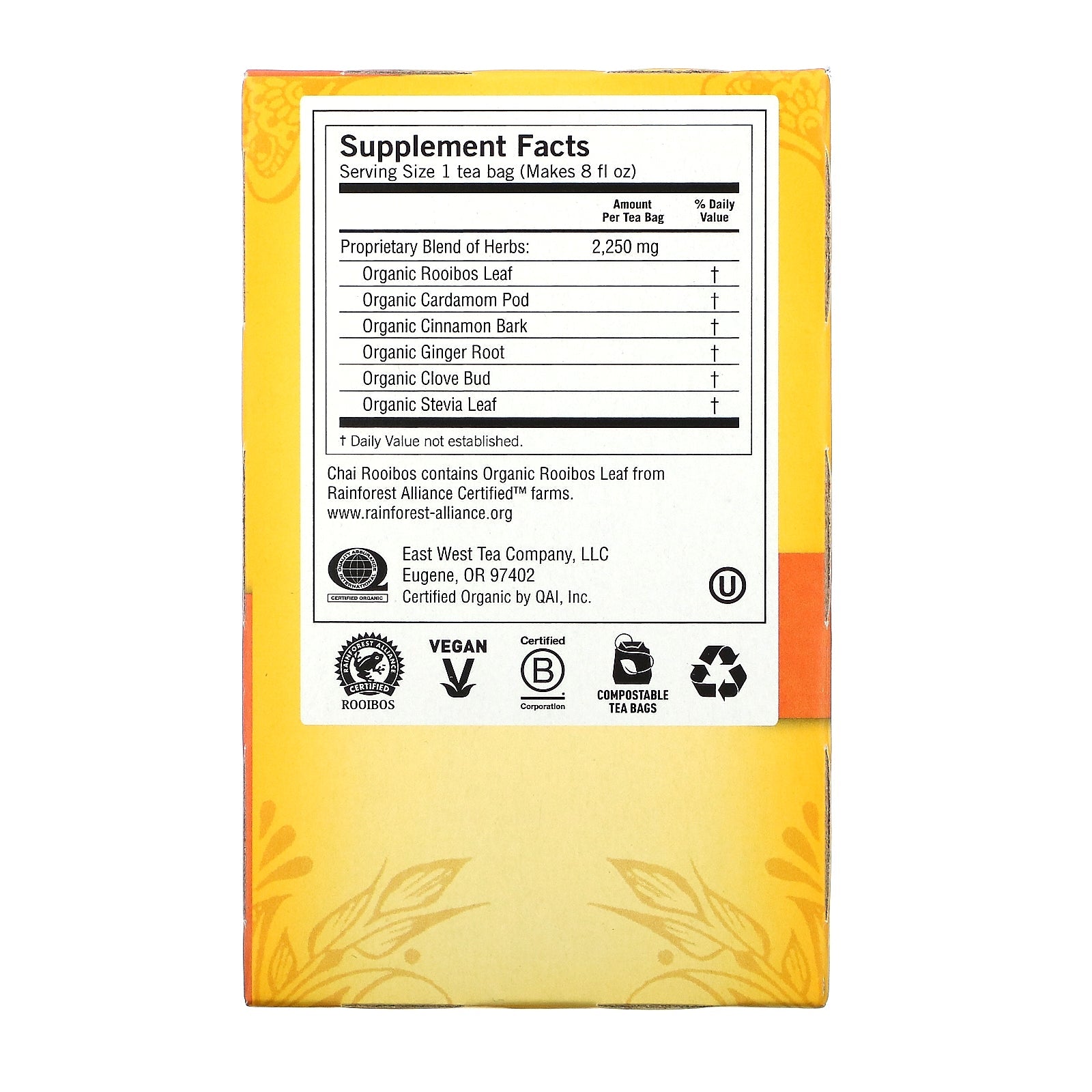 Warming and Spicy-Sweet Caffeine Free Herbal Supplement Non-GMO Project Verified USDA Organic Certified Organic by QAI Kosher Vegan Certified B Corporation Compostable Tea Bags Enjoy our Exotic Chai Rooibos Evoke the beauty of South Africa with our Chai R