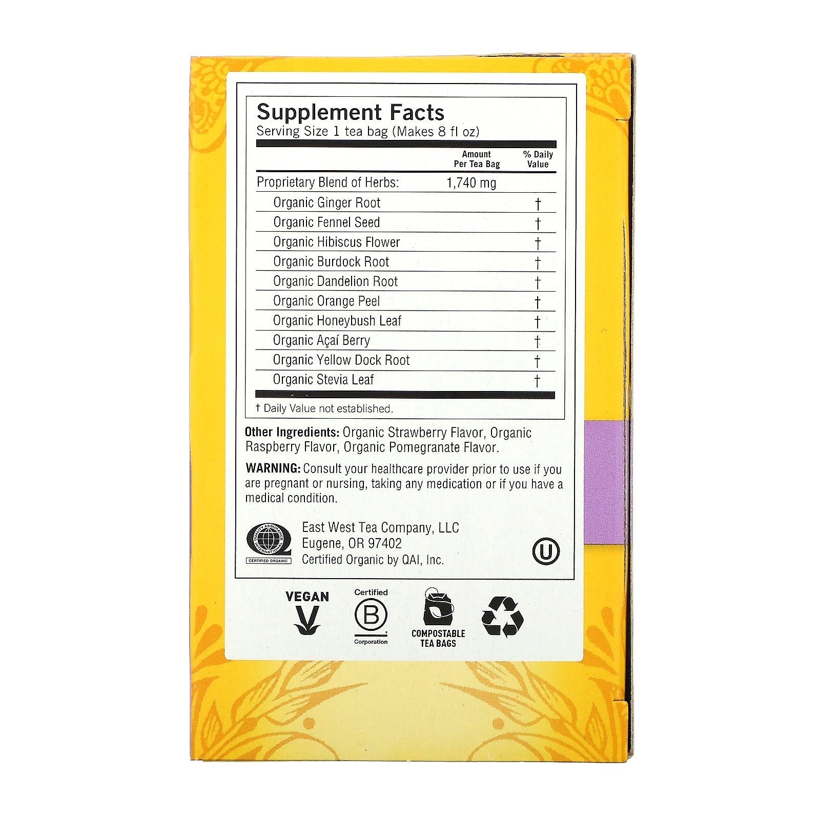 Healthy Cleansing Formula Herbal Supplement Non-GMO Project Verified USDA Organic Certified Organic by QAI, Inc. Kosher Vegan Certified B Corporation Compostable Tea Bags Revitalize with Berry DeTox We blend traditionally used cleansing herbs, Burdock a