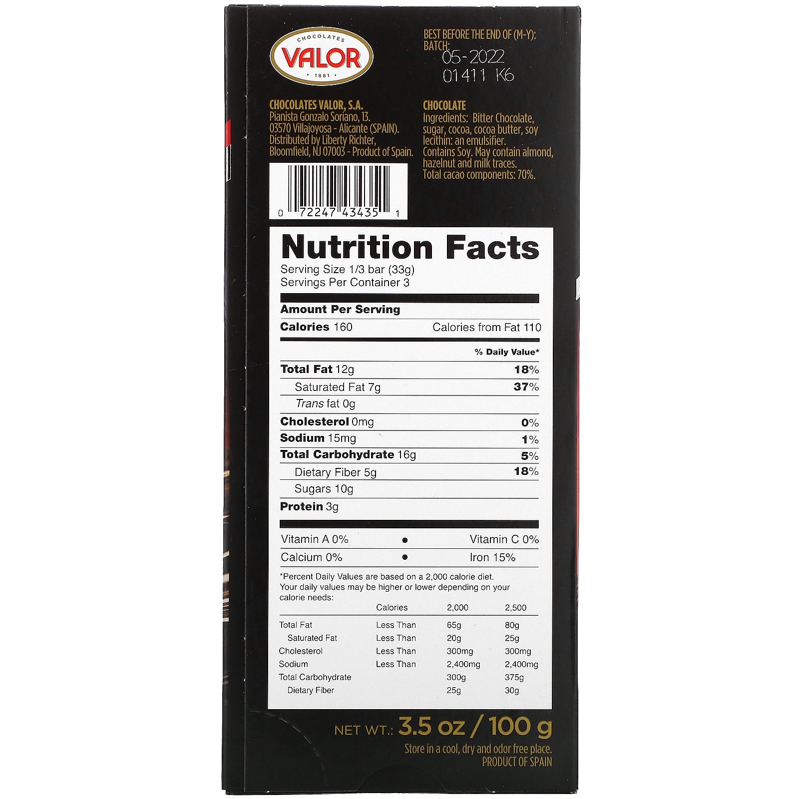 Valor, Intense Dark Chocolate, 70% Cacao, 3.5 oz (100 g)