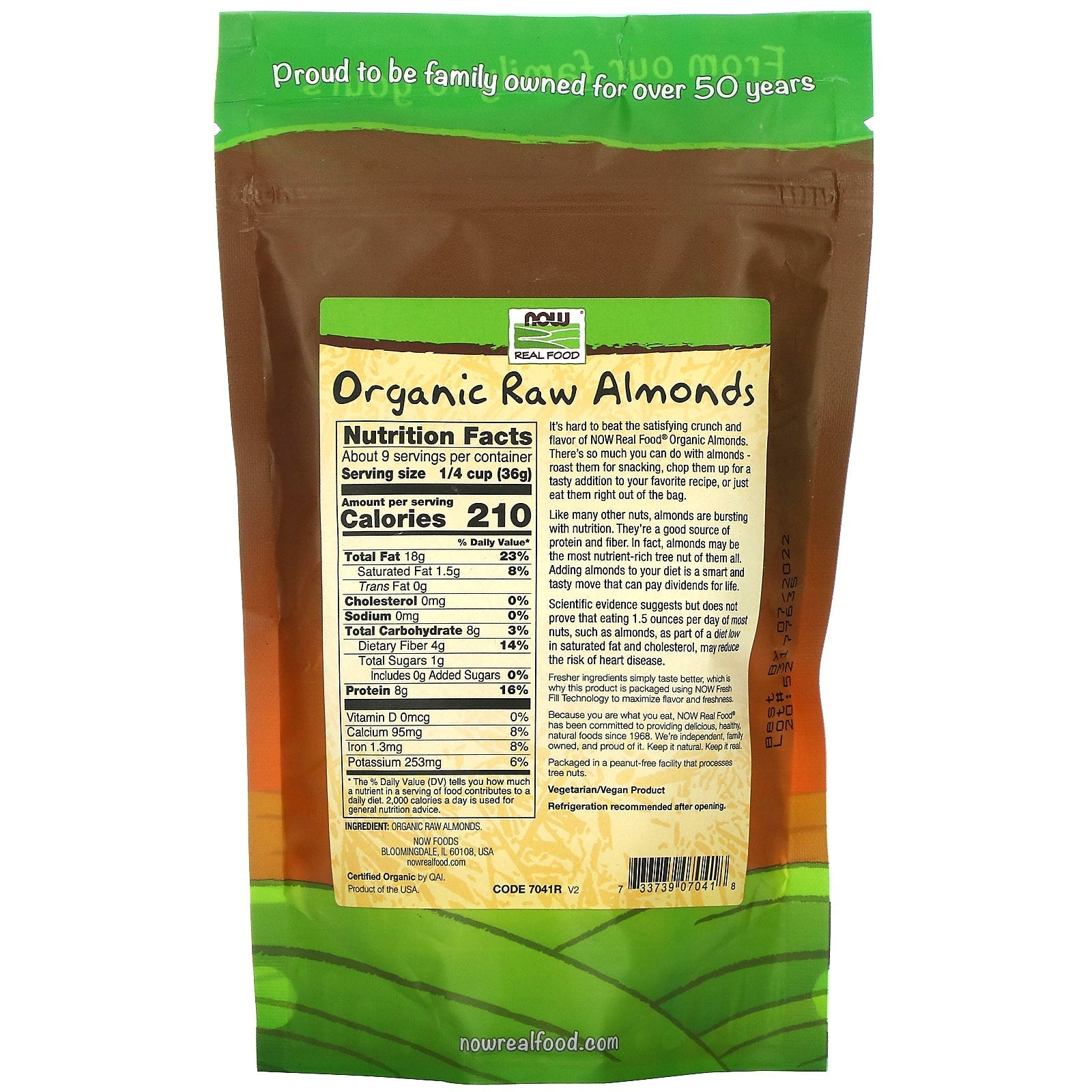From Our Family To Yours USDA Good Source of Protein and Fiber Grown in the USA Non GMO Project Verified Kosher Fresh, Wholesome & Tasty Always Real Nothing Artificial Pure Goodness Proud To Be Family Owned For Over 50 Years Certified by QAI Vegetarian/Vegan Product Raw Almonds It’s hard to beat the satisfying crunch and flavor of NOW Real Food ® Almonds. There’s so much you can do with almonds – roast them for snacking, chop them up for a tasty addition to your favorite recipe, or just eat them right out of the bag. Like many other nuts, almonds are bursting with nutrition. They’re a good source of protein and fiber. In fact, almonds may be the most nutrient-rich tree nut of them all. Adding almonds to your diet is a smart and tasty move that can pay dividends for life. Scientific evidence suggests but does not prove that eating 1.5 ounces per day of most nuts, such as almonds, as part of a diet low in saturated fat and cholesterol, may reduce the risk of heart disease. Fresher ingredients simply taste better, which why this product is packaged using NOW Fresh Fill Technology to maximize flavor and freshness. Because you are what you eat, NOW Real Food ® has been committed to providing delicious, healthy, natural foods since 1968. We’re independent, family owned, and proud of it. Keep it natural. Keep it real.