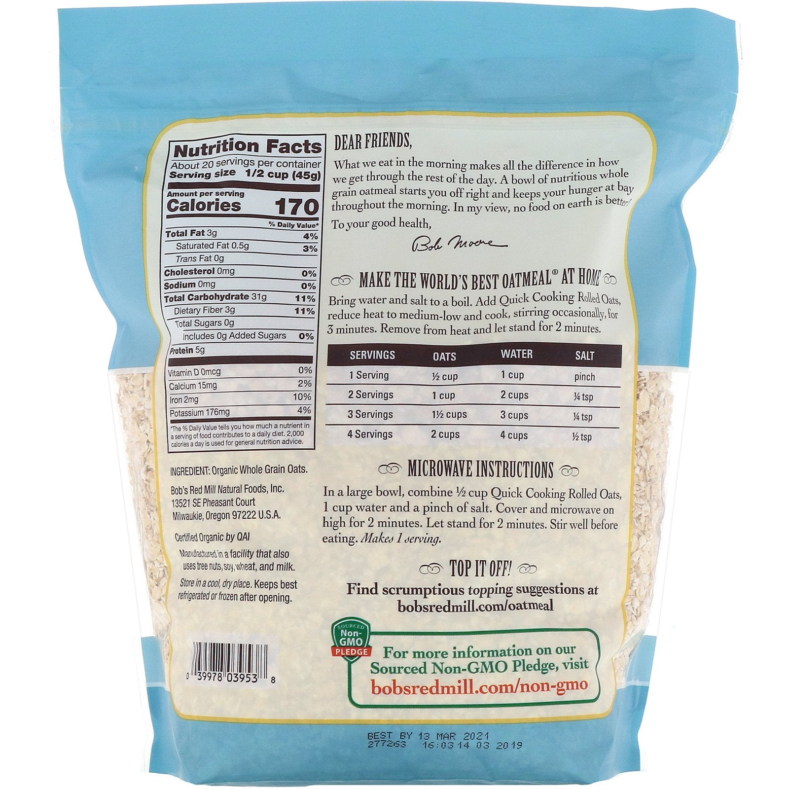 An Employee-Owned Company USDA Sourced Non-GMO Pledge 100% Whole Grain - 45 g or More Per Serving 100% of the Grain is Whole Grain Kosher Pareve You Can See Our Quality Certified by QAI World's Best Oatmeal - Good Source of Fiber Our Quick Cooking Rolled Oats are milled from the highest quality farm-fresh oats in the world. Each oat is rolled thin to shorten the cooking time, so a tasty bowl of whole grain oatmeal in just minutes away. Dear Friends, What we eat in the morning makes all the difference in how we get through the rest of the day. A bowl of nutritious whole grain oatmeal starts you off right and keeps your hunger at bay throughout the morning. In my view, no food on earth is better! To your good health, Bob Moore
