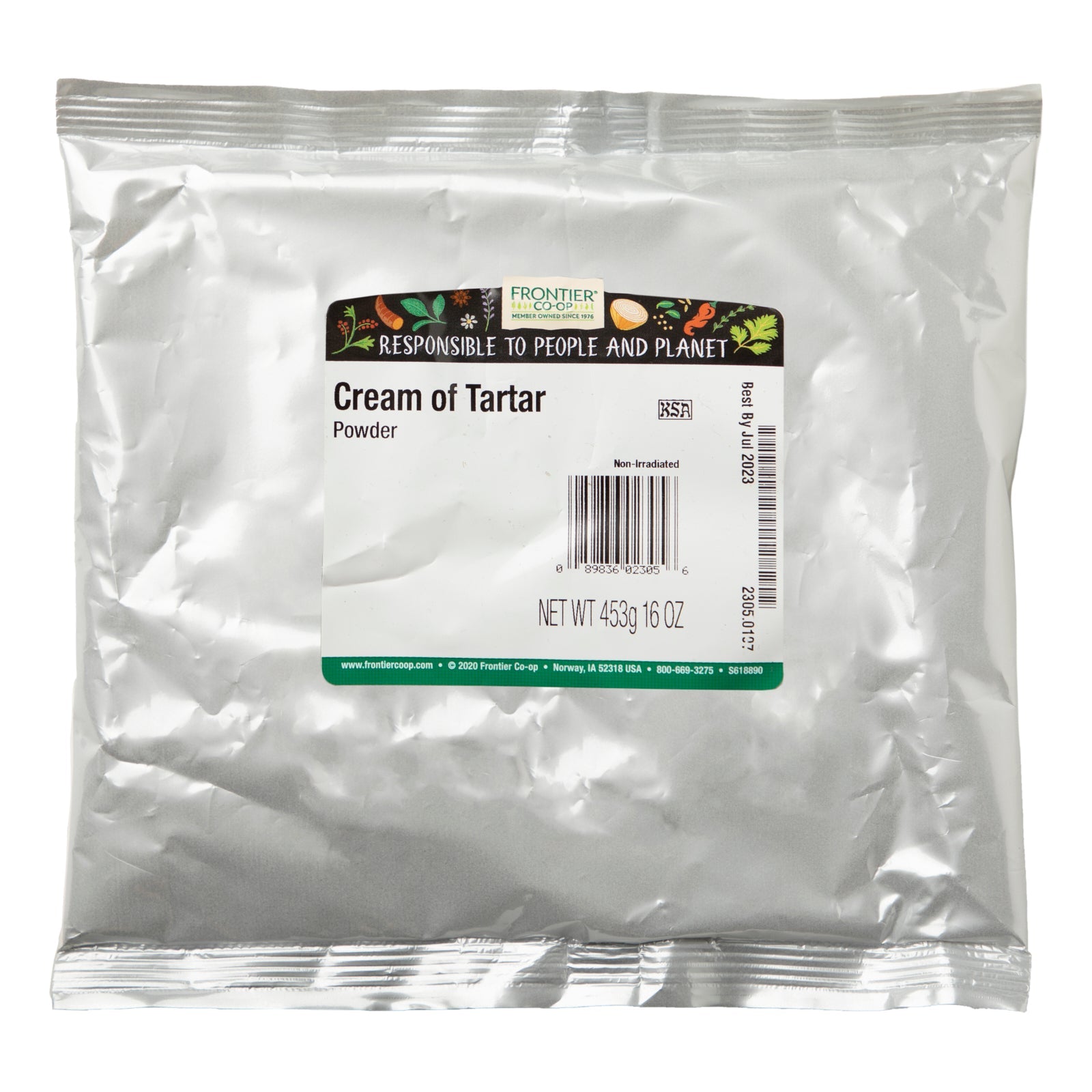 Member Owned Since 1976 Responsible to People and Planet Kosher Non-Irradiated Origin - Spain An indispensable ingredient in baking, Frontier® Cream of Tartar acts as a leavening agent in cakes, quick breads and souffles when combined with baking soda and water. An essential ingredient in Snickerdoodle cookies, it aids in stiffening egg whites — just add a pinch of cream of tartar while beating — preventing sugar syrups from crystallizing and reducing discoloration of boiled vegetables.Sugg. UseUse to stabilize egg whites and increase their heat tolerance. Use to prevent sugar syrups from crystallizing.Other IngredientsSupplement FactsDisclaimerWhile VitaminsUK strives to ensure the accuracy of its product images and information, some manufacturing changes to packaging and/or ingredients may be pending update on our site. Although items may occasionally ship with alternate packaging, freshness is always guaranteed. We recommend that you read labels, warnings and directions of all products before use and not rely...