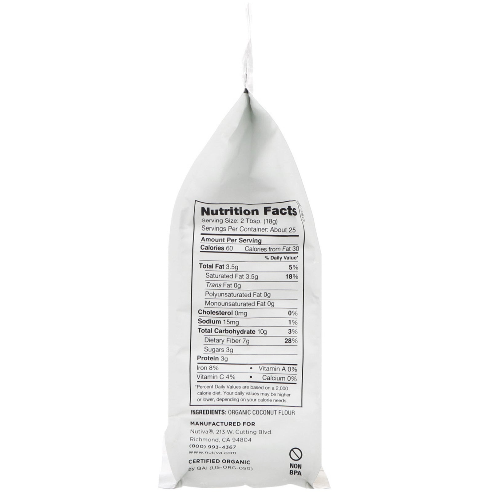 Nurture Vitality Superfood Delicious in Baked Goods 3 g Protein | 7 g Fiber Per Serving USDA Non GMO Project Verified Certified Gluten-Free Kosher Revolutionizing the Way the World Eats Certified By QAI Non BPA Our coconut flour is an excellent non-grain alternative. Ground from high quality dried coconut meat, it's high in fiber with 32% of your daily value per serving. Its mild coconut flavor works beautifully in both sweet and savory recipes.Sugg. UseQuick Tips & Storage Substitute coconut flour for up to 1/3 of wheat flour in recipes. As coconut flour absorbs a lot of water due to its high fiber content, be sure to increase the liquid by up to 1/3 as well.Other Ingredients coconut flour.Supplement FactsServing Size: 2 Tbsp (18 g) Servings Per Container: About 25 Amount Per Serving % Daily Value* Calories 60 Calories from Fat 30 Total Fat 3.5 g 5% Saturated Fat 3.5...
