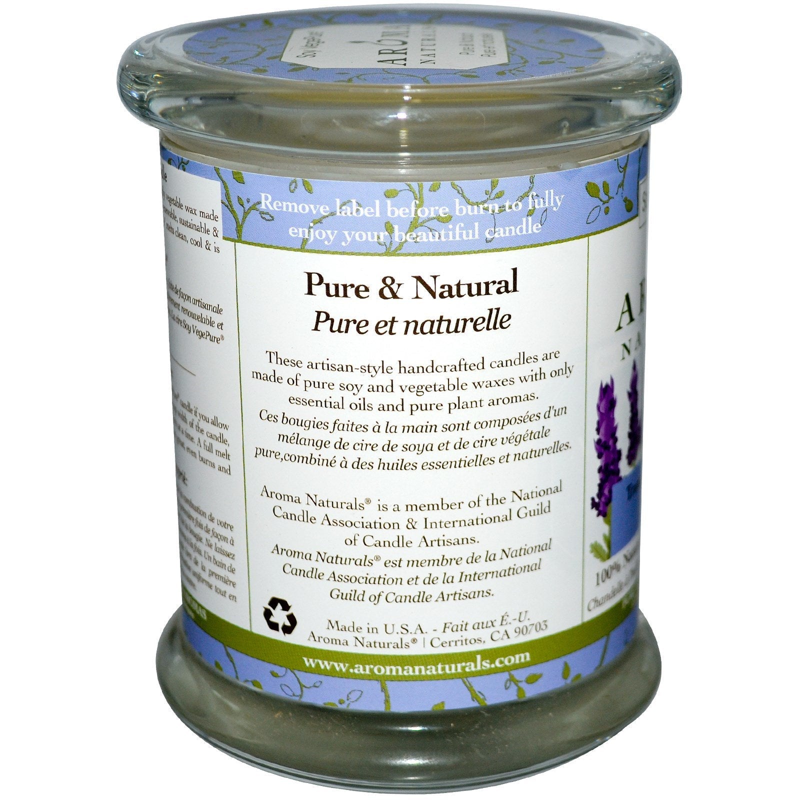 Pure & Natural Pure Plant & Flower Aromas 3" x 3.5" Soy Pillar Candle "Handcrafted, Pure, Natural & Organic" Authentic Aromatherapy Candles Aroma Naturals candles burn cleaner and release natural, delicate allergy friendly aromas that have therapeutic properties. Natural Products Association & Organic Trade Association. Aroma Naturals Eco-Candle Soy VegePure is a handcrafted eco-friendly vegetable wax made with the oil of soybeans that is completely renewable, sustainable & supports American farmers. Soy VegePure melts clean, cool & is longer burning. Pure & Natural These artisan-style handcrafted candles are made of pure soy and vegetable waxes with only essential oils pure plant aromasSugg. UseYou'll have best results with your Soy VegePure candle if you allow the first burn to melt the wax across the top width of the candle, without burning it for more than three hours at a time. A full melt pool on the first burn will ensure you...