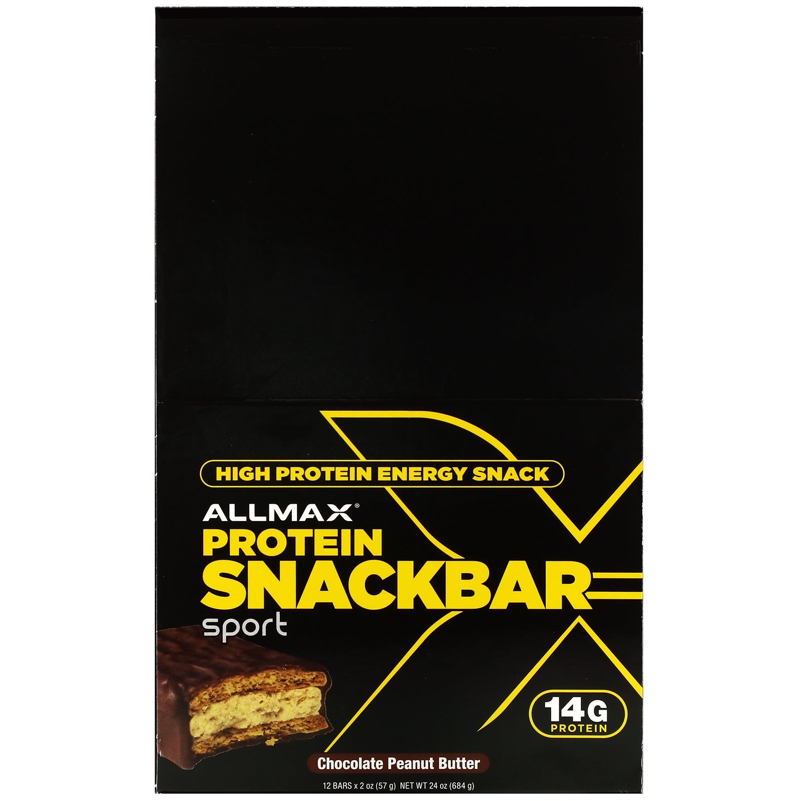 Sport 14 g Protein You Are Gonna Love This! Sink your teeth into crispy, creamy layers of Allmax Protein Snackbars. Every delicious bite is made with real food: chocolate, peanut butter, graham crackers and whey protein isolate. An easy, mouthwatering way to get high-protein fuel after a workout or to fight hunger between meals. Discover your favorite anytime snack!Sugg. UseOther IngredientsPeanut butter [Dry roasted peanuts, palm oil, salt); graham cracker (wheat flour, sugar, palm shortening (palm oil, soybean oil, canola oil, vitamin E (as antioxidant)), high-fructose corn syrup, whole wheat flour, corn starch, natural vanilla flavor, soy lecithin, baking soda, salt, molasses]; coating (sugar, hydrogenated palm kernel oil, cocoa powder, whey powder, nonfat milk powder, soy lecithin (as emulsifier), natural vanilla flavor), whey protein isolate, salt. Allergen warnings: Contains wheat, peanut, milk, and soy. Produced in a facility that also uses or handles tree nuts, coconuts and eggs.Supplement FactsServing Size:...