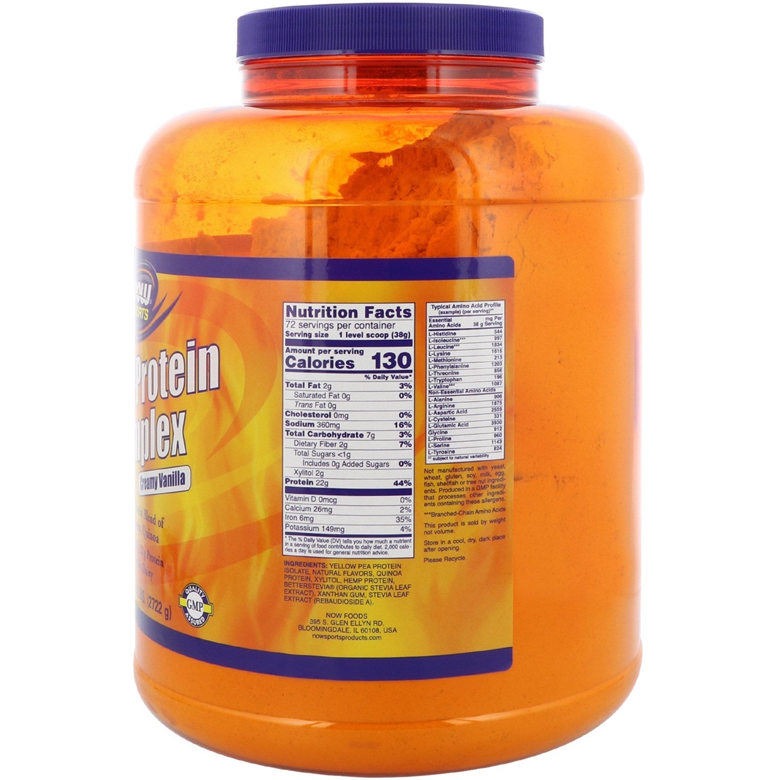 Power Size No Artificial Sweeteners- No Aspartame- No Sucralose- No Acesulfame-K Vegan Protein Blend of Pea, Hemp, Quinoa Non-GMO 22 g Protein No Soy, No Dairy GMP Quality Assured If you're an active vegetarian or vegan then you know how difficult it can be to find a premium quality vegetarian protein powder. NOW Sports Plant Protein Complex is specifically formulated to address your needs with a non-GMO vegan protein blend from Pea, Hemp and Quinoa sources. Each 1 scoop serving provides 22 grams of protein, and typically has about 3,900 mg of branched-chain amino acids and 1,800 mg of L-Arginine. Naturally sweetened with Xylitol and Stevia, NOW Sports Plant Protein Complex is the ideal protein product for your active vegetarian lifestyle.