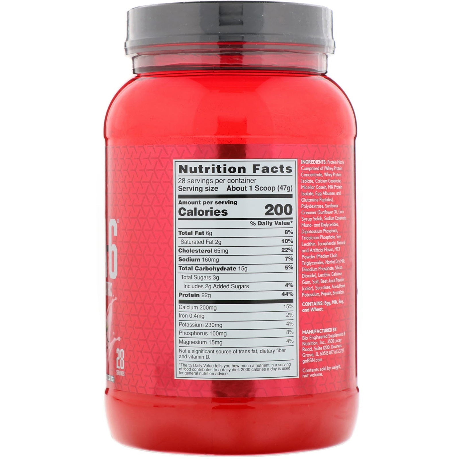 Serving Size: About 1 Scoop (47 g) Servings Per Container: 28 Amount Per Serving % Daily Value * Calories 200 Total Fat 6 g 8% Saturated Fat 2 g 10% Cholesterol 65 mg 22% Sodium 160 mg 7% Total Carbohydrate 15 g 5% Total Sugars 3 g Includes 2 g Added Sugars 4% Protein 22 g 44% Calcium 200 mg 15% Iron 0.4 mg 2% Potassium 230 mg 4% Phosphorus 100 mg 8% Magnesium 15 mg 4% Not a significant source of trans fat, dietary fiber and vitamin D. *The % Daily Value tells you how much a nutrient in a serving of food contributes to a daily diet. 2000 calories a day is used for general nutrition advice.Disclaimer