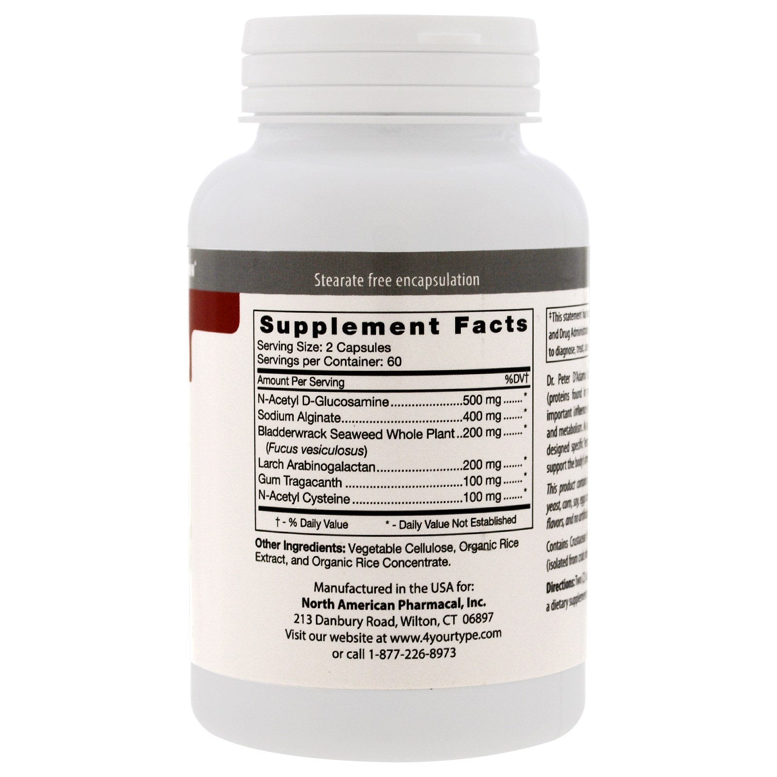 D'Adamo Personalized Nutrition Lectin Blocking Formula Designed for Type 0 Individuals Dietary Supplement Stearate Free Encapsulation GMP Quality Assured Dr. Peter D'Adamo has identified dietary lectins (proteins found in many common foods) as an important influence on the body's immune system and metabolism. As a result of this research, he has designed specific 'lectin blocking' formulas to help support the body's immune system and metabolism.Sugg. UseTwo (2) capsules 2-3 daily with meals as a dietary supplement or as directed by a physician.Other IngredientsVegetable cellulose, organic rice extract, and organic rice concentrate. This product contains no sugar, salt, gluten, wheat, yeast, corn, soy, eggs or dairy, no preservatives, color or flavors, and no artificial ingredients. Contains Crustacean from N-Acetyl D-glucosamine (isolated from crab shell).Supplement FactsServing Size: 2 Capsules Servings per Container: 60 Amount Per Serving %DV† N-Acetyl D-Glucosamine 500 mg * Sodium Alginate 400 mg * Bladderwrack Seaweed Whole Plant (Fucus...