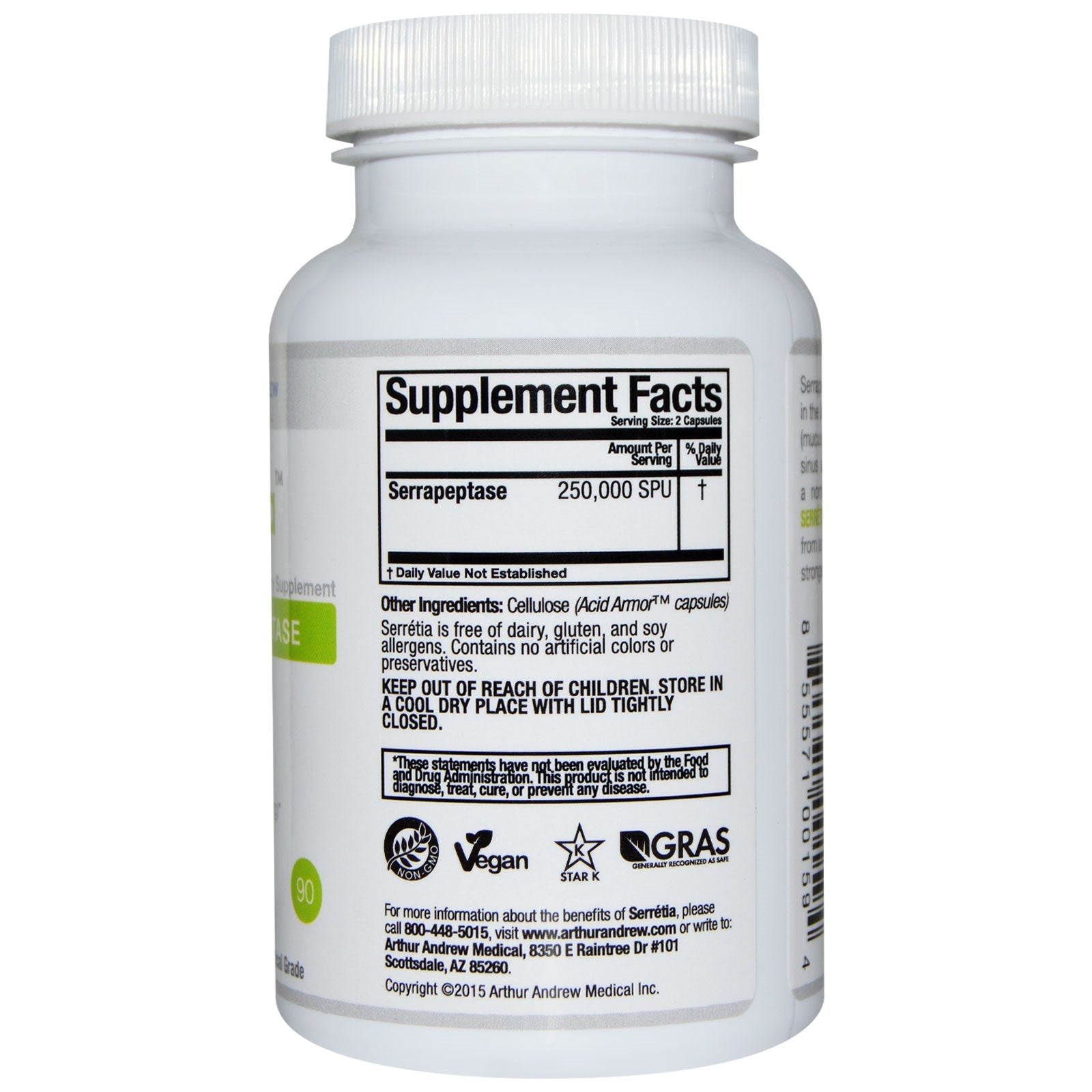 Arthur Andrew Medical, Serretia, Pure Serrapeptase, 500 mg, 90 Capsules