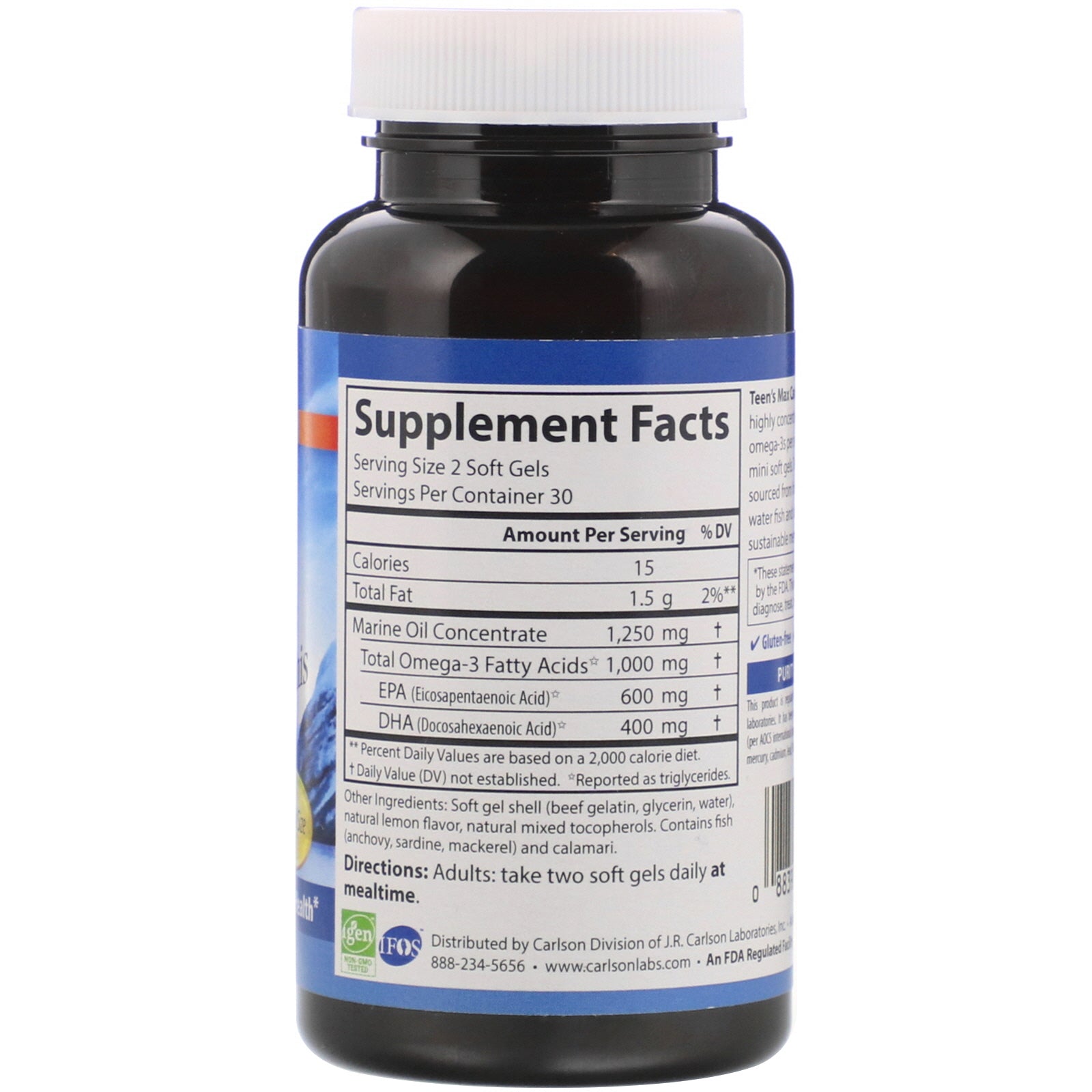 Carlson Labs, Teen's Max Catch Minis, 1,000 mg, 60 Mini Soft Gels