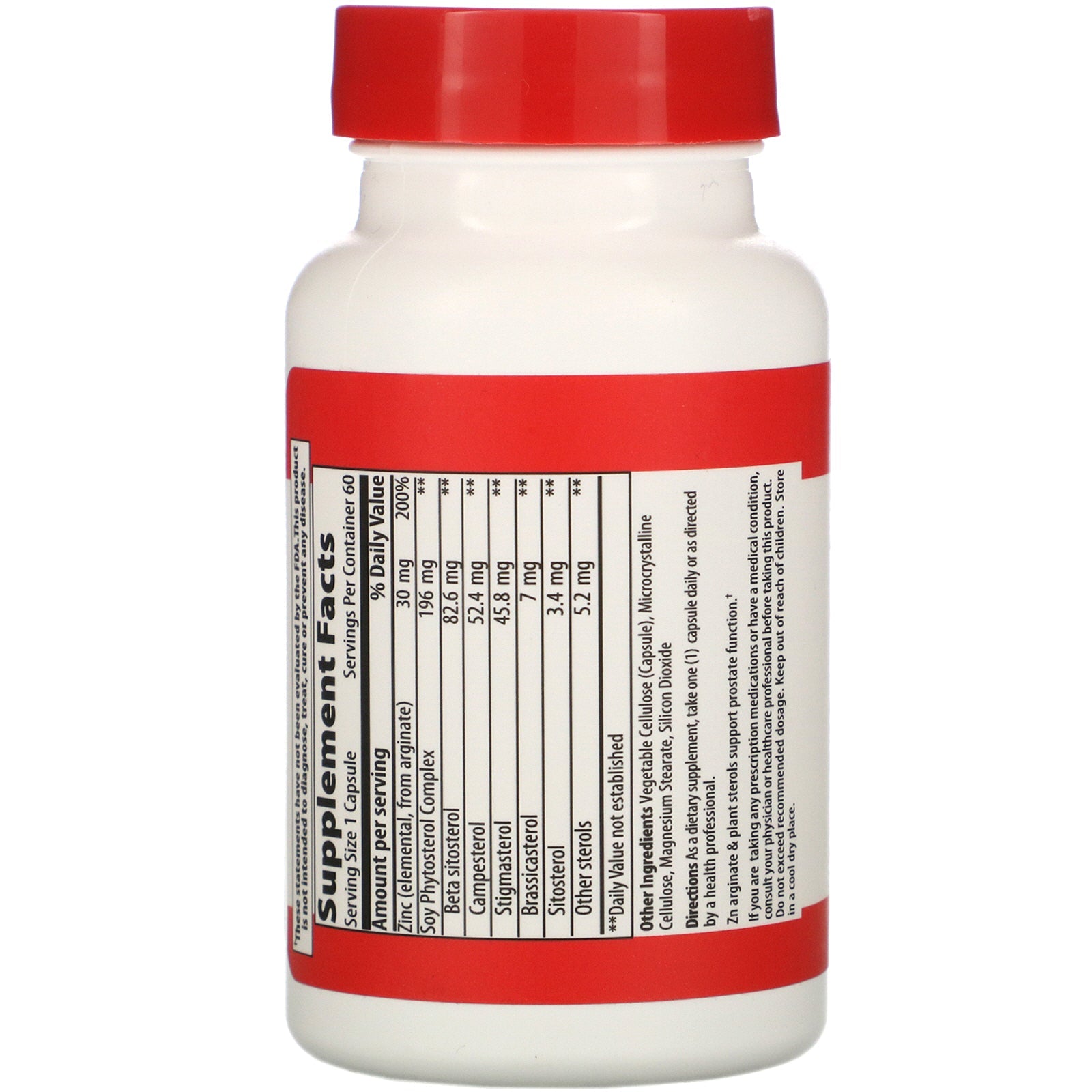 Specialized Mineral for Men Zinc Arginate & Plant Sterols Supports Prostate Health, Immunity, Bone Health & Tissue Repair Zn Gluten Free Non GMO Dietary Supplement Look What's Inside - No Proprietary Blends | Full Disclosure Labeling Made in the USA Since 1992 Zinc arginate & plant sterol support prostate function.Sugg. UseAs a dietary supplement, take one (1) capsule daily or as directed by a health professional.Other IngredientsVegetable cellulose (capsule), microcrystalline cellulose, magnesium stearate, silicon dioxide.Supplement FactsServing Size: 1 Capsule Servings Per Container: 60 Amount Per Serving % Daily Value Zinc (elemental, from arginate) 30 mg 200% Soy Phytosterol Complex 196 mg ** Beta sitosterol 82.6 mg ** Campesterol 52.4 mg ** Stigmasterol 45.8 mg ** Brassicasterol 7 mg ** Sitosterol 3.4 mg ** Other sterols 5.2 mg ** **Daily Value not establishedDisclaimerWhile VitaminsUK strives to ensure the accuracy of its product images and information, some manufacturing changes to packaging and/or...