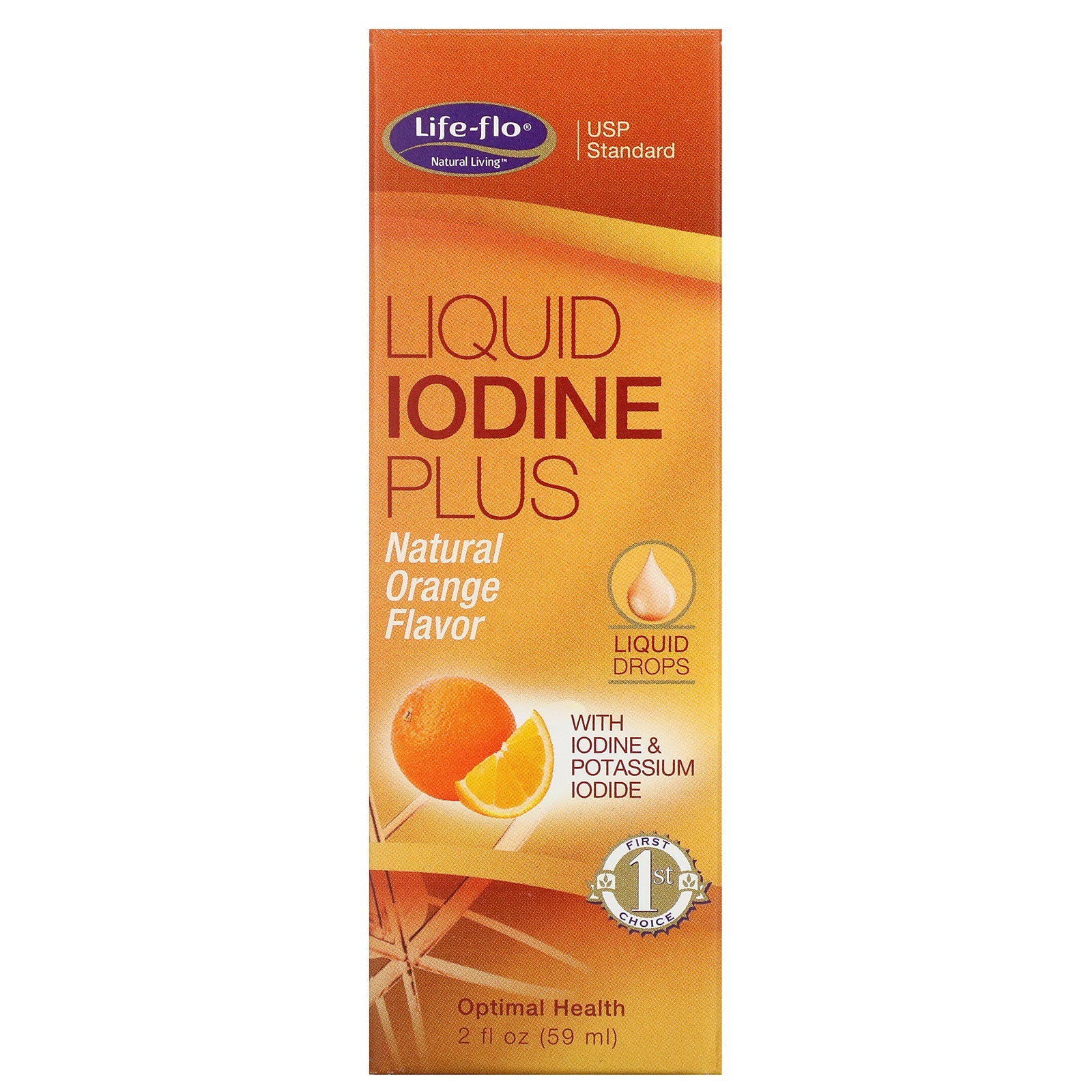 Natural Living USP Standard With Iodine & Potassium Iodide 1st Choice Optimal Health No Animals were Used to Test this Product Discussion: Three drops of Liquid Iodine Plus Orange provides 150 mcg of iodine per daily serving which is the recommended daily allowance that the body needs. Natural orange flavor added for great taste!Sugg. UseUse only as directed. Take 3 drops daily in a glass of water or with meals.Other IngredientsPurified water, glycerin, natural flavor, citric acid, stevia, and potassium sorbate.Supplement FactsServing Size: 3 Drops Servings Per Container: About 320 Amount Per Serving % Daily Value* Iodine (as Iodine, Potassium Iodide) 150 mcg 100%DisclaimerWhile VitaminsUK strives to ensure the accuracy of its product images and information, some manufacturing changes to packaging and/or ingredients may be pending update on our site. Although items may occasionally ship with alternate packaging, freshness is always guaranteed. We recommend that you read labels, warnings and...