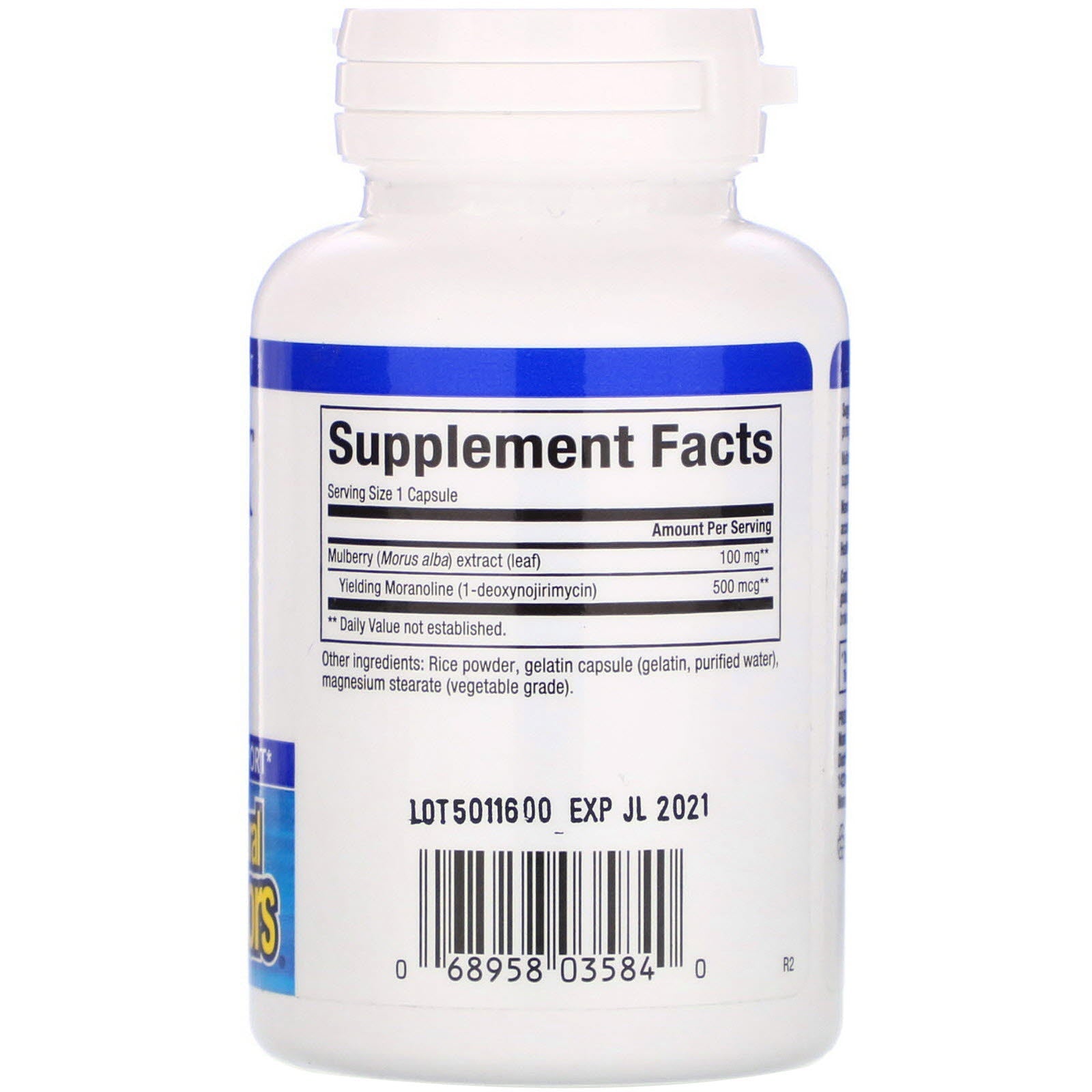 Dietary Supplement Herbal Antioxidant Support Purity & Potency Guaranteed Mulberry extract contains Moranoline (1-deoxynojirimycin), a key active that supports healthy blood sugar levels already within normal range.Sugg. Use1 capsule per day with a meal or as directed by a health professional.Other IngredientsRice powder, gelatin capsule (gelatin, purified water), magnesium stearate (vegetable grade). Contains no artificial preservatives, color or sweeteners; no corn, dairy, gluten, soy, wheat or yeast. Manufactured by Natural Factors to ensure safety and potency in accordance with Good Manufacturing Practices (GMP) of the FDA and Health Canada.Supplement FactsServing Size 1 Capsule Amount Per Serving % Daily Value Mulberry (Morus alba) extract (leaf) 100 mg ** Yielding Moranoline (1-deoxynojirimycin) 500 mcg ** ** Daily Value not established.DisclaimerWhile VitaminsUK strives to ensure the accuracy of its product images and information, some manufacturing changes to packaging and/or ingredients may be pending update on our site. Although items may occasionally ship with...