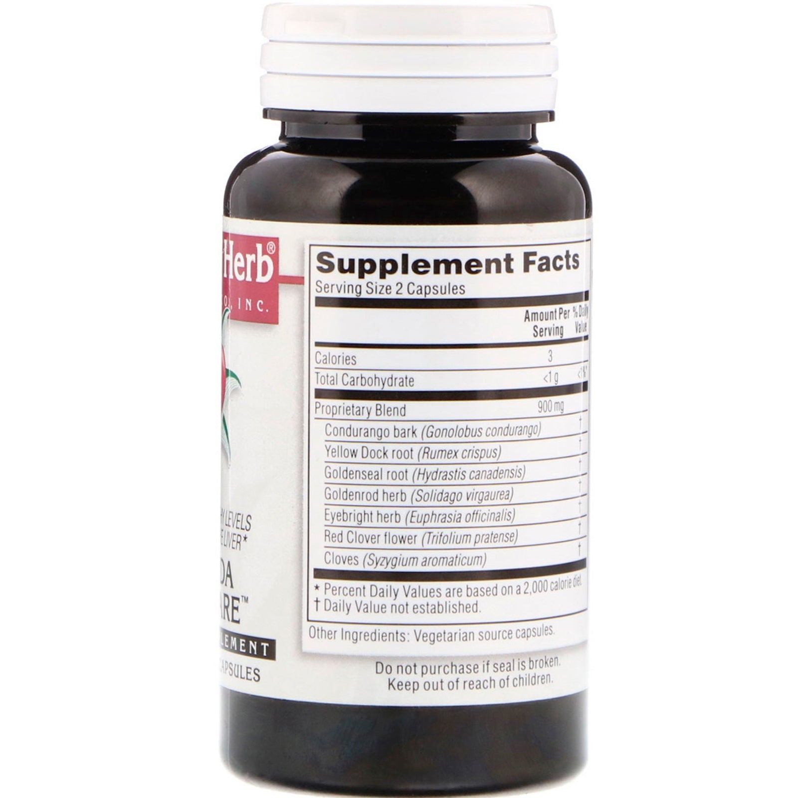 Maintains Healthy Levels of Candida in the Liver Herbal Supplement A 16 Day SupplySugg. Use2 capsules 3 times daily before meals.Other IngredientsVegetarian source capsules. Contains no: Yeast, wheat, gluten, corn, rice or preservatives.Supplement FactsServing Size: 2 Capsules Amount Per Serving %Daily Value Calories 3 Total Carbohydrate < 1 g < 1 %* Proprietary Blend 900 mg Condurango bark (Gonolobus condurango) † Yellow Dock root (Rumex crispus) † Goldenseal root (Hydrastis canadensis) † Goldenrod herb (Solidago virgaurea) † Eyebright herb (Euphrasia officinalis) † Red Clover flower (Trifolium pratense) † Cloves (Syzygium aromaticum) † * Percent Daily Values are based on a 2,000 calorie diet. † Daily Value not established.DisclaimerWhile VitaminsUK strives to ensure the accuracy of its product images and information, some manufacturing changes to packaging and/or ingredients may be pending update on our site. Although items may occasionally ship with alternate packaging, freshness is always guaranteed. We recommend that you read...