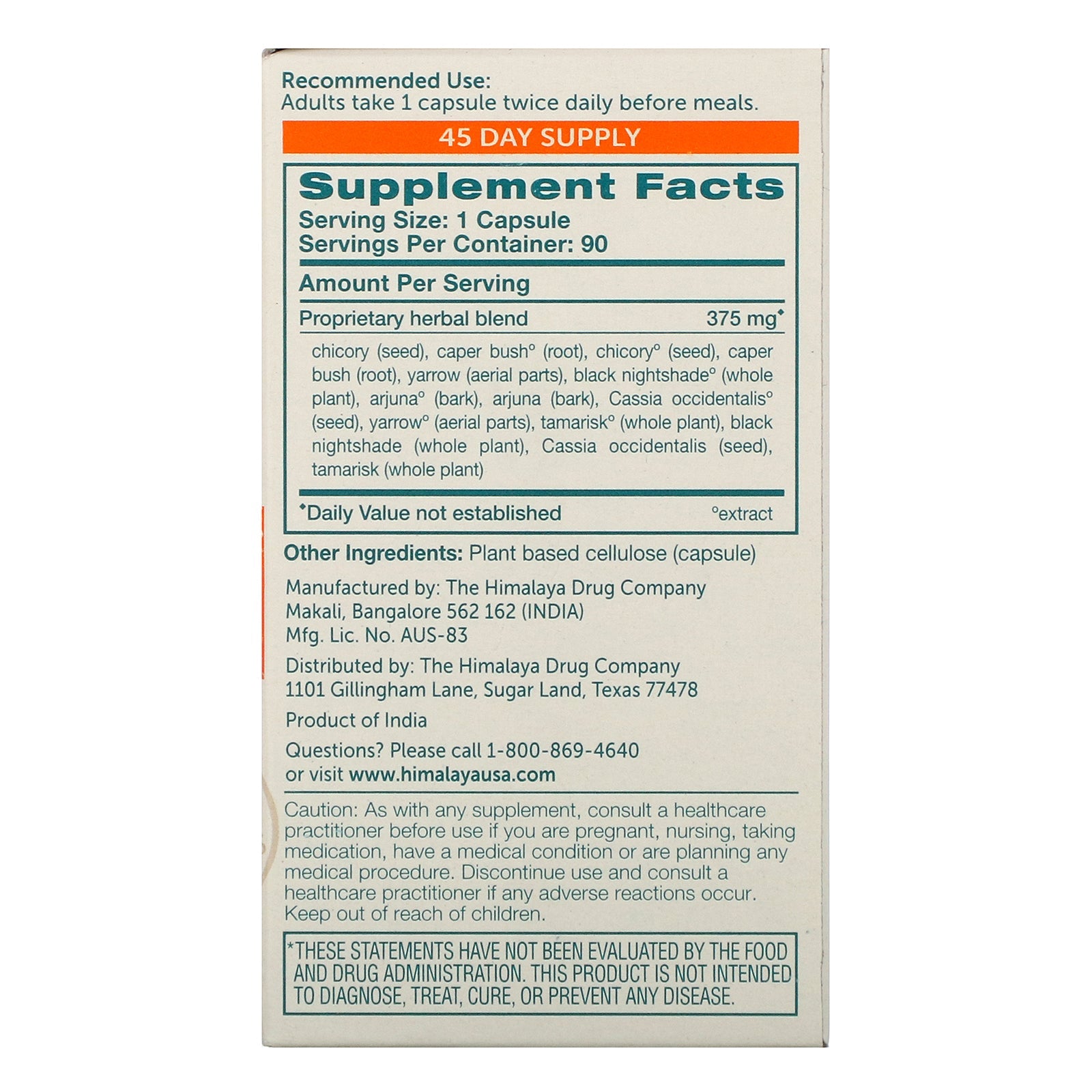 Serving Size: 1 Capsule Servings Per Container: 90 Amount Per Serving % Daily Value Proprietary herbal blend chicory (seed), caper bush° (root), chicory° (seed), caper bush (root), yarrow (aerial parts), black nightshade° (whole plant), arjuna° (bark), arjuna (bark), Cassia occidentalis° (seed), yarrow° (aerial parts), tamarisk° (whole plant), black nightshade (whole plant), Cassia occidentalis (seed), tamarisk (whole plant). 375 mg * * Daily Value not established. °extract.Disclaimer