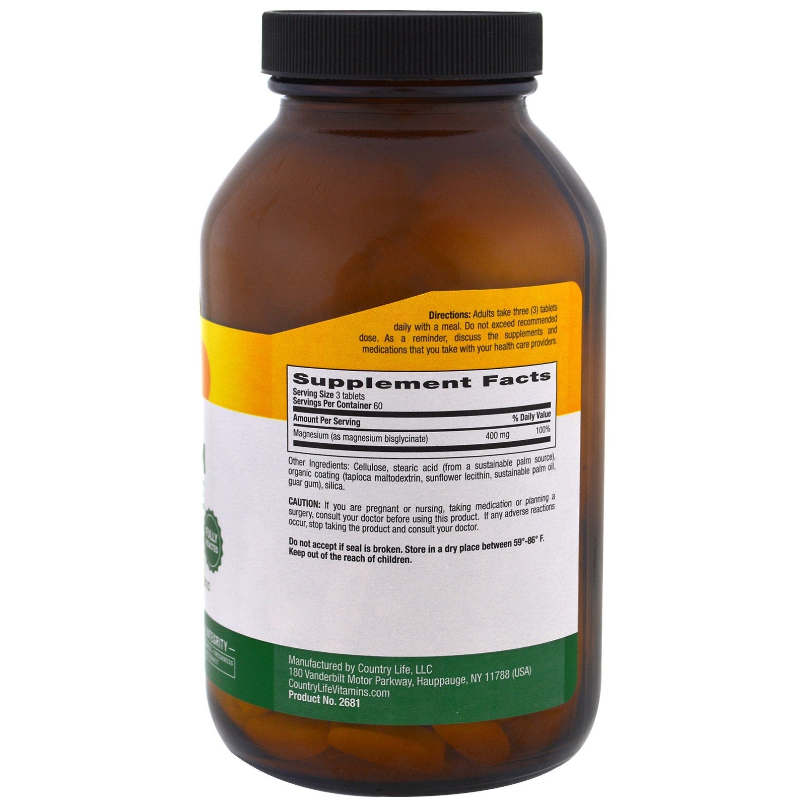 Country Life, Chelated Magnesium Glycinate, 400 mg, 180 Tablets