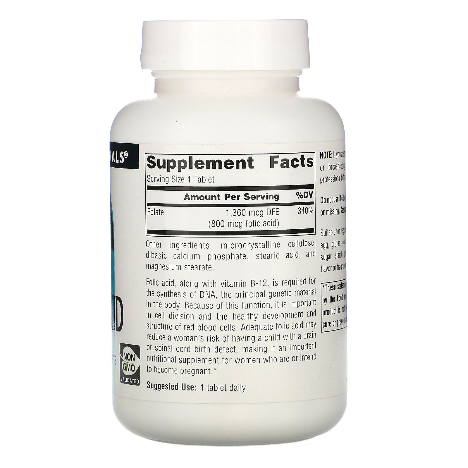 Source Naturals, Folic Acid, 800 mcg, 500 Tablets