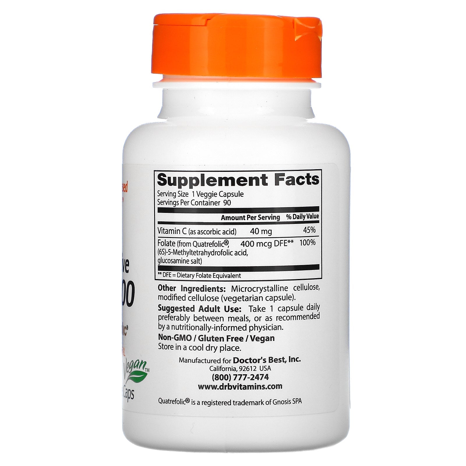 Doctor's Best, Fully Active Folate 400 with Quatrefolic, 400 mcg, 90 Veggie Caps