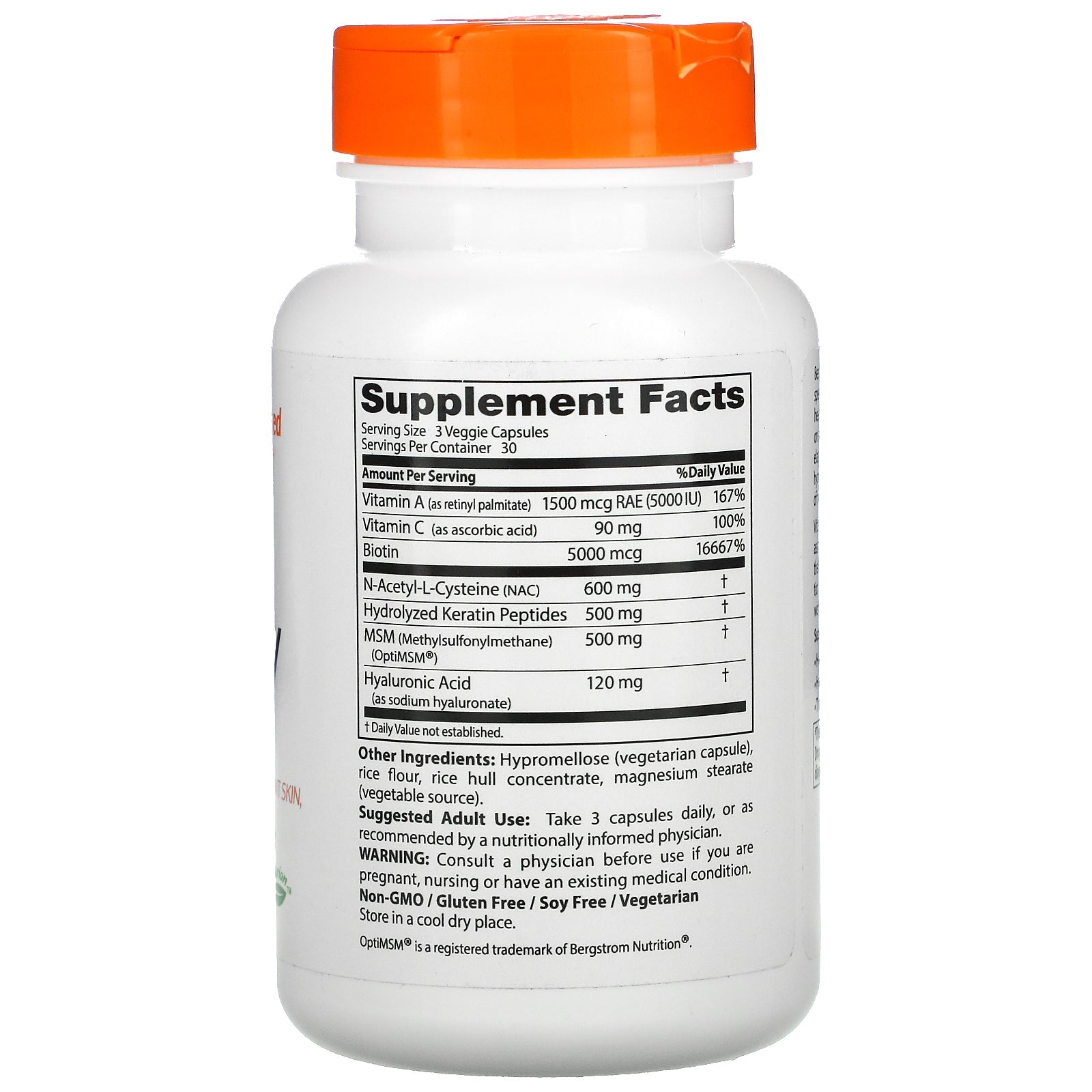 Science-Based Nutrition ™ OptiMSM ® Promotes Radiant Skin, Healthier Hair, Stronger Nails Dietary Supplement Vegetarian ™ Non-GMO / Gluten Free / Soy Free Beauty starts from the inside out. Beauty Complex is specifically formulated with 7 vital ingredients for healthy hair, skin and nails. With an added emphasis on skin, we incorporated Keratin to help improve skin elasticity, Hyaluronic Acid to help maintain skin hydration and NAC to help replenish Glutathione, one of the body's most important antioxidants. Vitamin A helps skin maintenance, while Vitamin C assists with collagen production and Biotin helps with the overall upkeep of healthy hair and skin. The addition of MSM helps promote Keratin, which in turn works to promote Glutathione. Supports : Healthy hair, skin and nails Healthy skin hydration and elasticity The production of collagen with Vitamin CSugg. UseAdult use : Take 3 capsules daily, or as recommended by a nutritionally informed physician.Other...