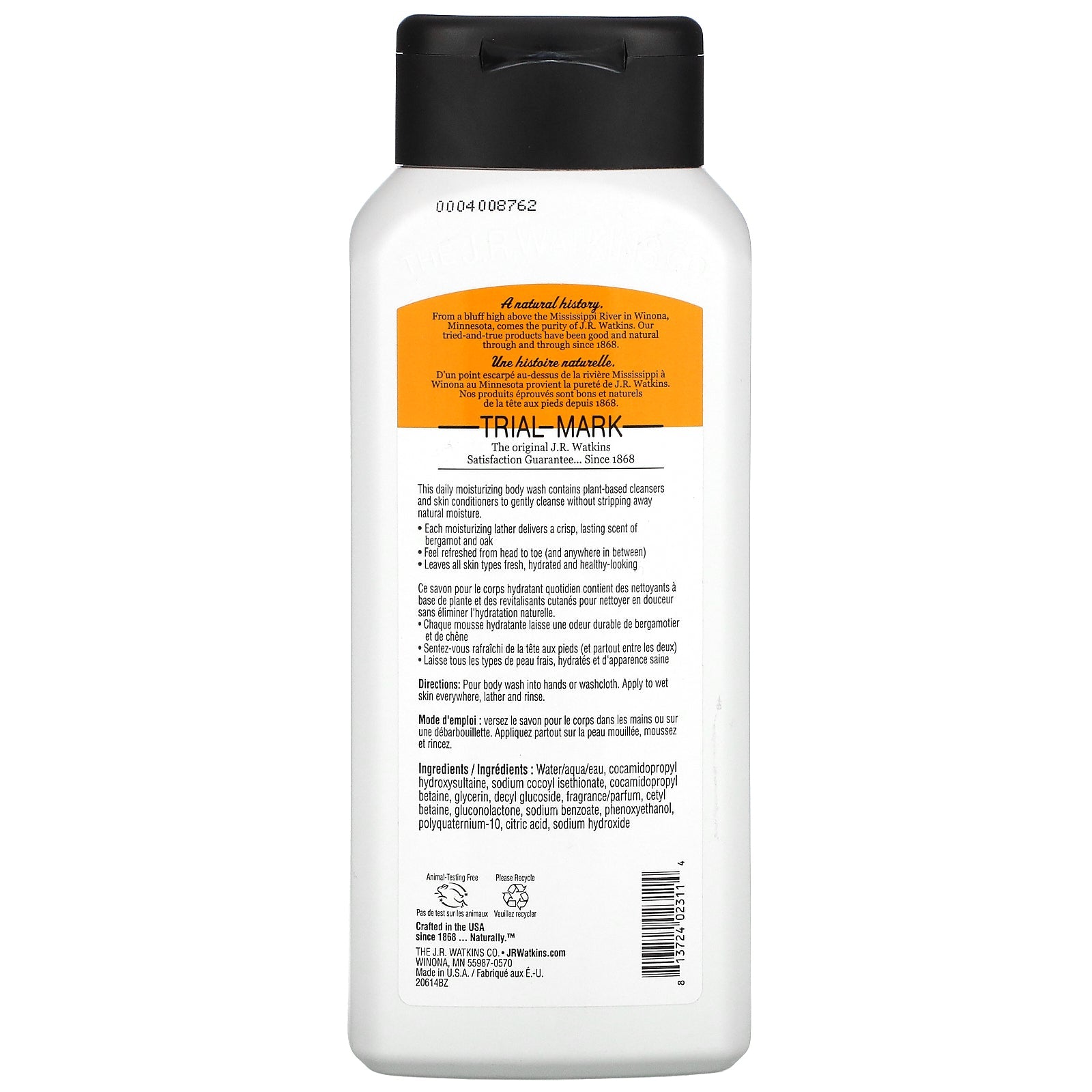 J R Watkins, Men's Body Wash, Bergamot & Oak, 18 fl oz (532 ml)