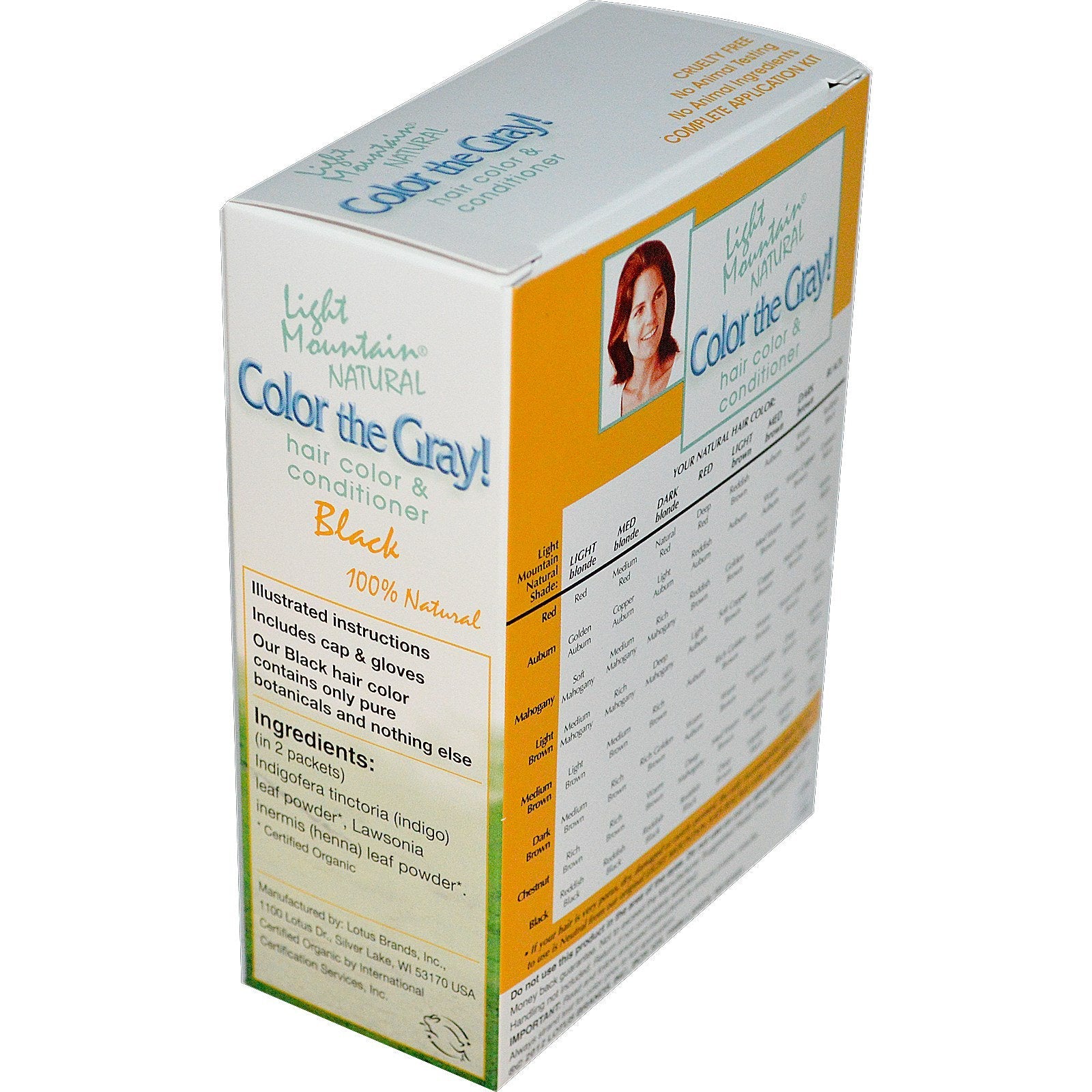 Light Mountain, Color the Gray! Natural Hair Color & Conditioner, Black, 7 oz (198 g)
