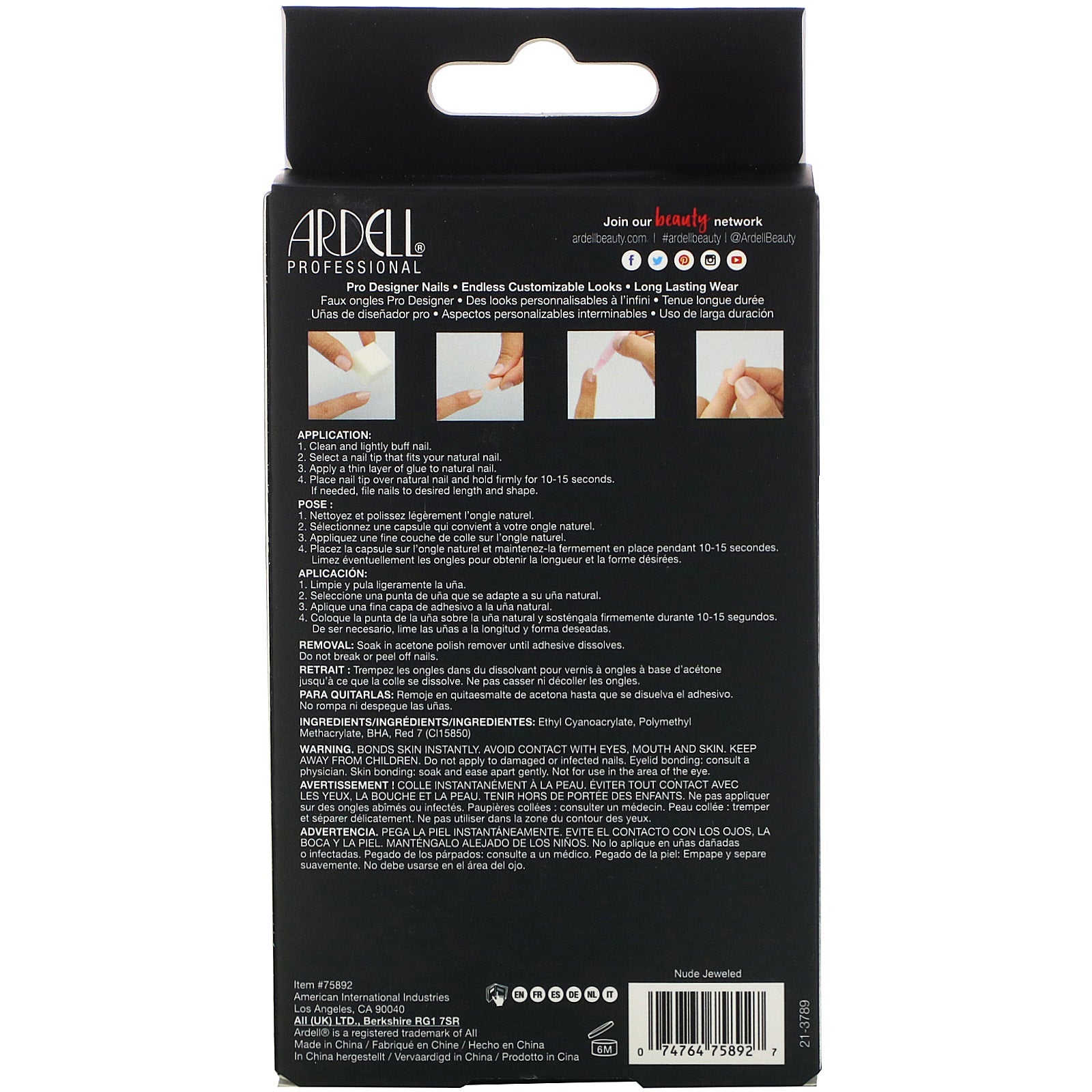 #NAILADDICT Pro Designer Nails Endless Customizable Looks Long Lasting Wear Contains: 24 Nails, Professional Glue, File, Cuticle StickSugg. UseApplication: Clean and lightly buff nail. Select a nail tip that fits your natural nail Apply a thin la